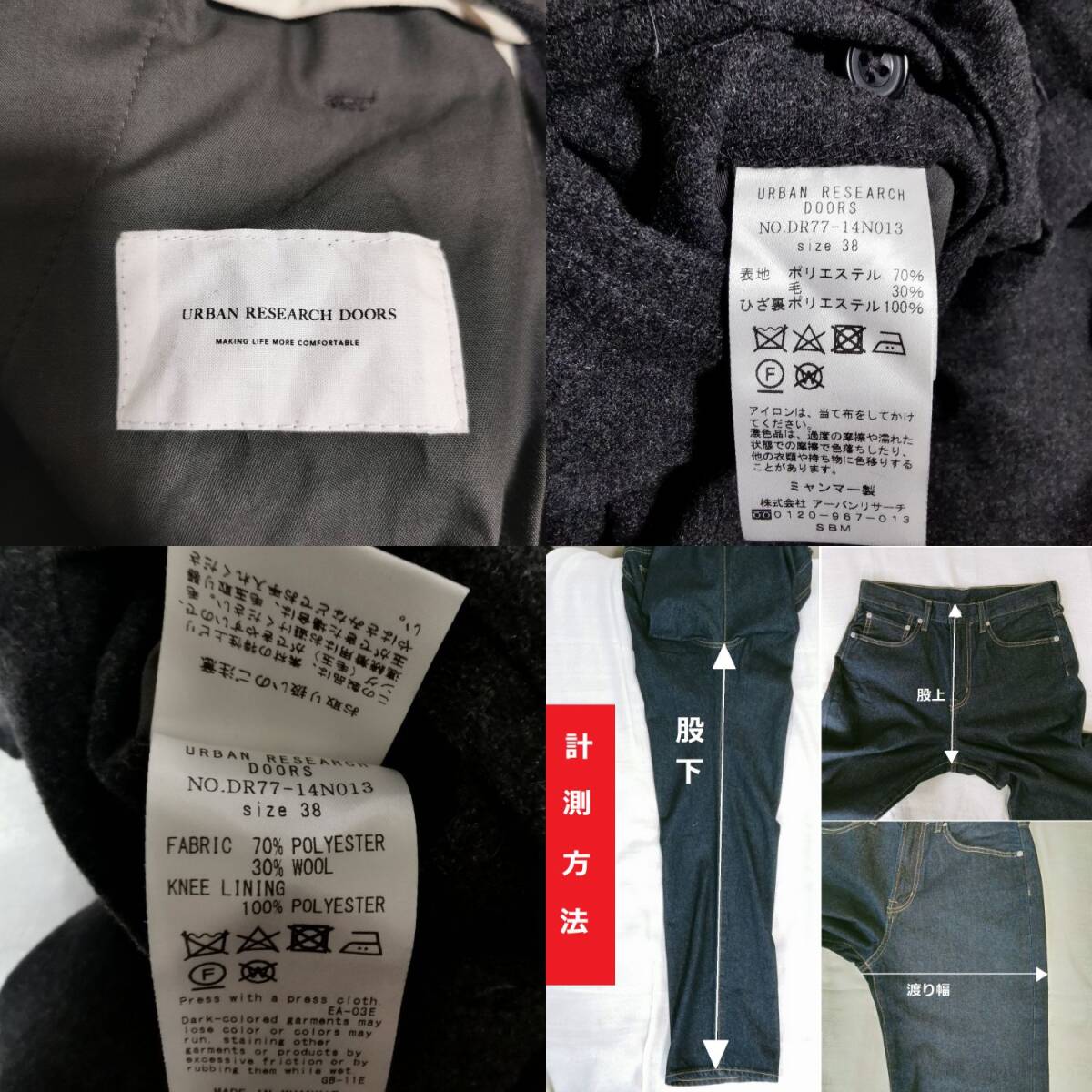 【実寸サイズ】ウエスト37~41 股上28 ワタリ31.5 股下72 裾幅17.5センチほどです。
