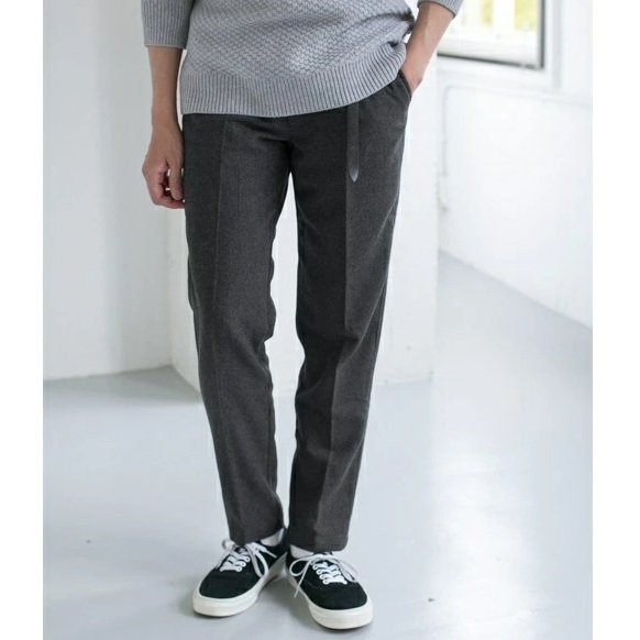 ウエストはゴム入りのイージーパンツ仕立てで、テーパードの効いたすっきりとしながらも穿き心地の良い冬の定番ボトム。