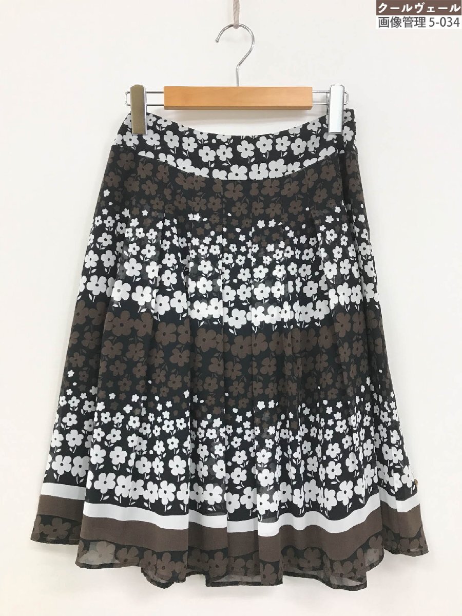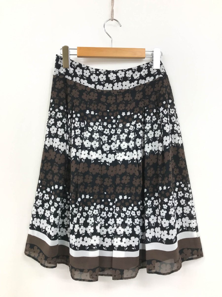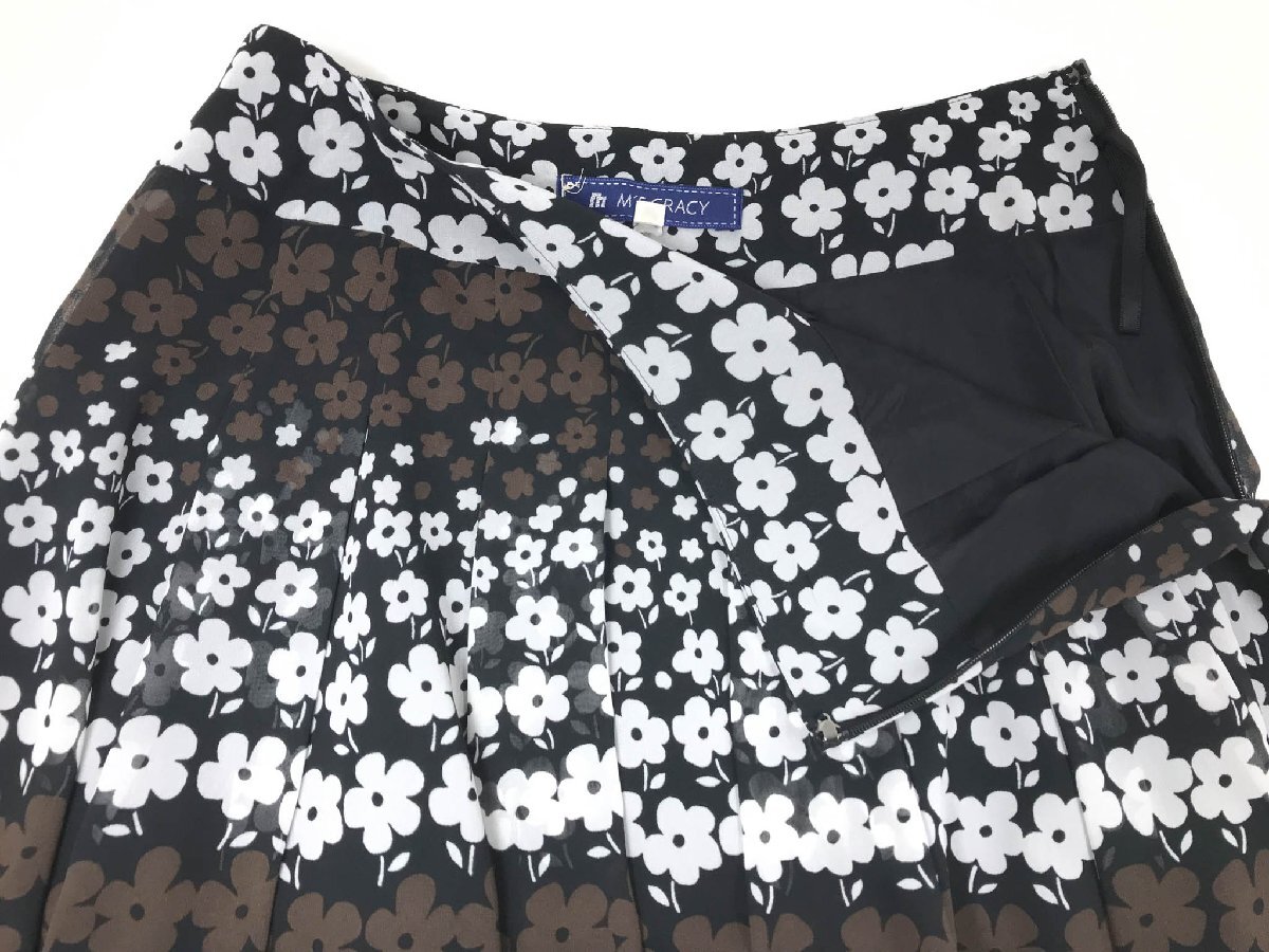 HH超美品 【エムズグレイシー M'S GRACY】 シフォン 花柄プリントフレアースカート FN-927367 (レディース) size38 ブラック ◯5LF3899◯