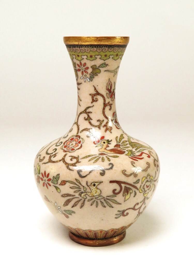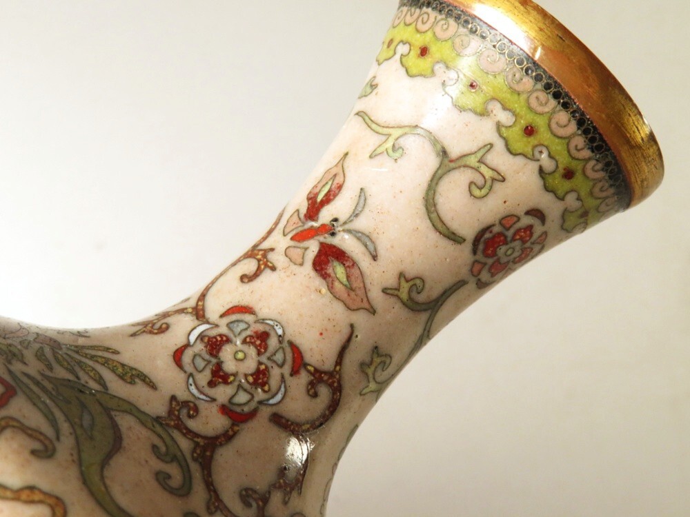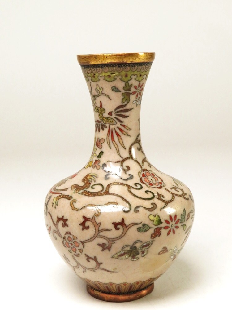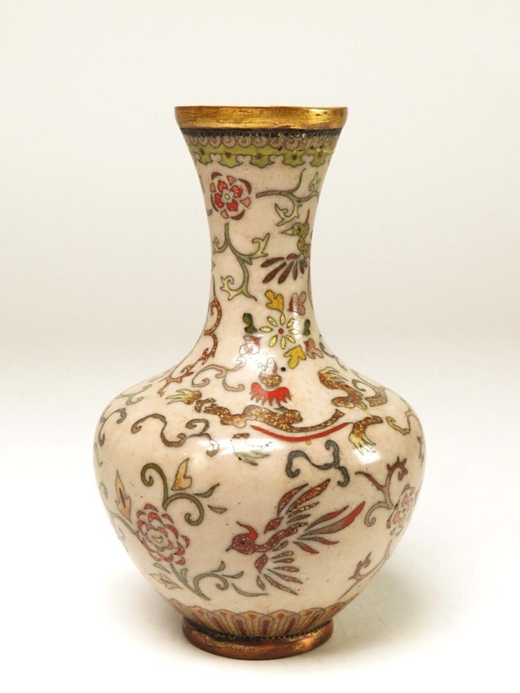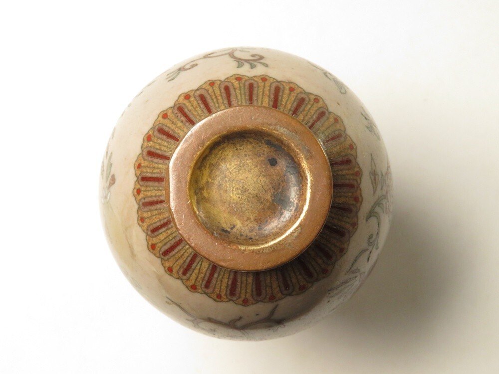 ●明治期 尾張七宝 鳳凰図 花瓶になります。古い物ですが極力状態の良い作品を出品しておりますので是非ご覧ください。 【状態】 ●経年を考慮し状態はよいと思います。 【サイズ(約)】 ●高さ9.3㎝ 幅5.8㎝ (素人寸法ですので、若干の誤差はお許し下さい) 【重量】 ●94g 【発送】 出張等により発送に一週間ほどお時間を頂戴する場合がございます。 【領収書】 領収書発行は致しておりません。 Yahoo!かんたん決済手続き完了時の確認画面をプリントアウトして領収書としてお使い下さい。 ※領収証として税務署に認められております。 ご了承のうえでのご参加をお願いいたします。以下の注意事項もご確認ください。 |