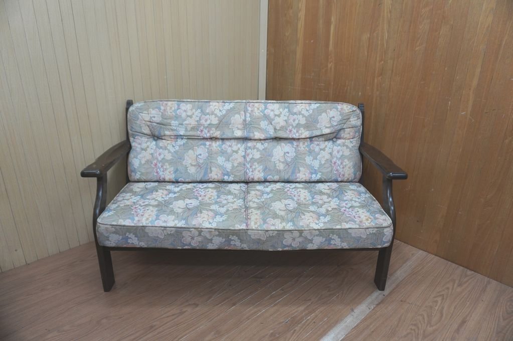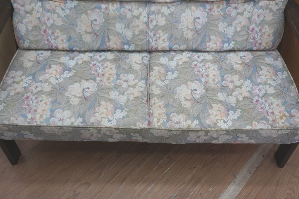 | u23-1010-3 KARIMOKU FURNITURE カリモク ファニチャー オールドカリモク 花柄ソファー 2人掛け 2P 旧ロゴ | |