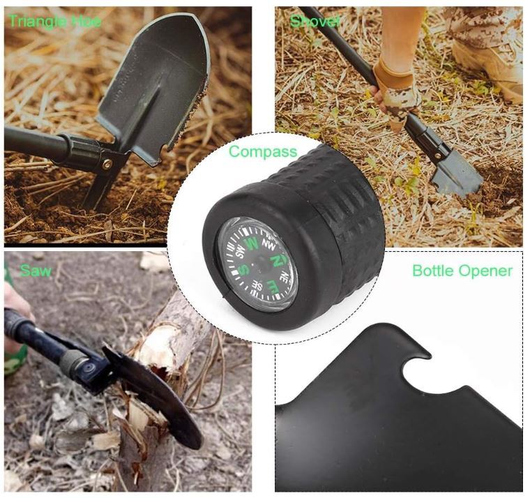 複数の用途があり、シャベル、ピック、ソー、ビール瓶を開ける機能があります。