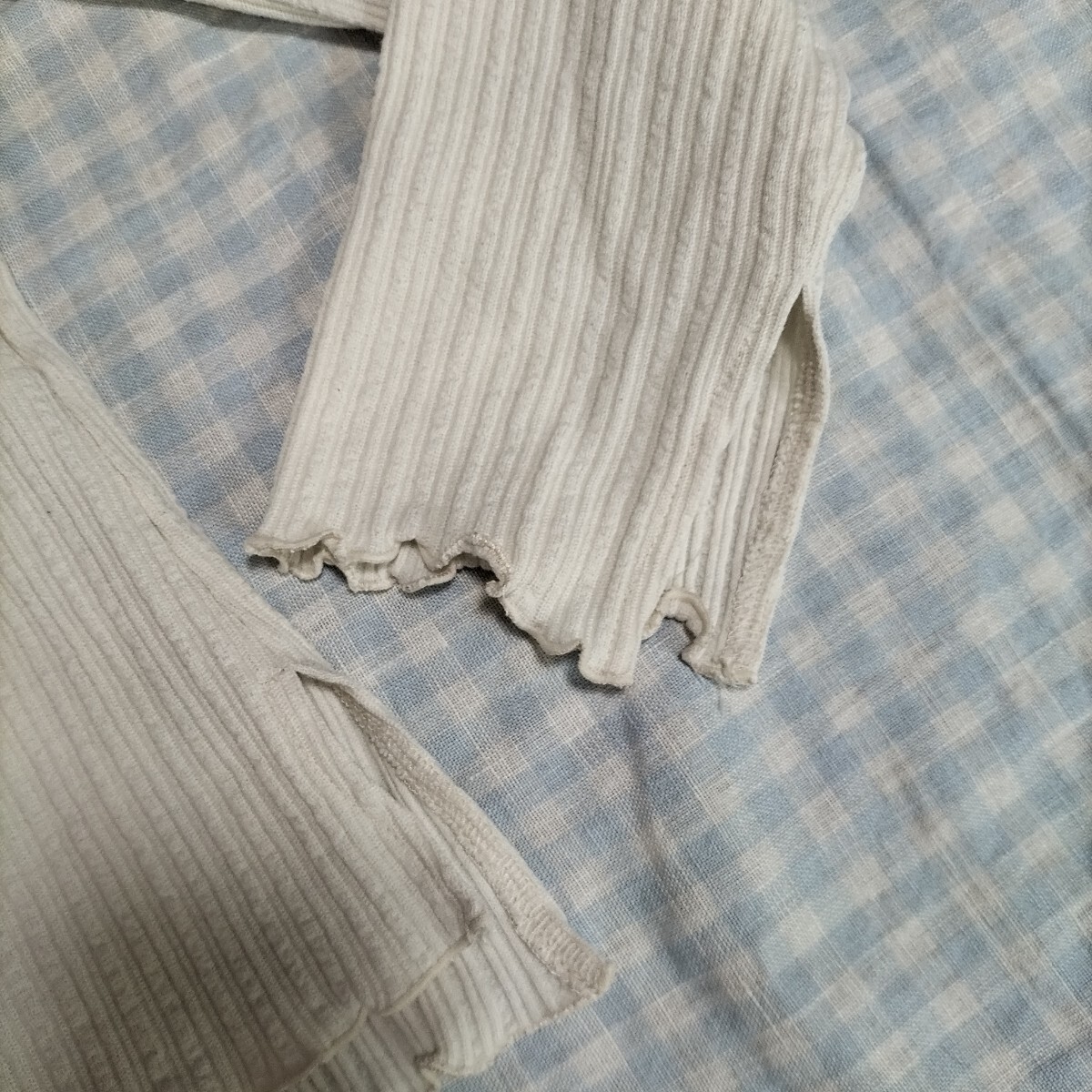 少し使用感ありです。色は生成り 素材は画像をご覧ください。日本製 サイズ 肩幅37cm 胸幅45cm 袖丈55cm 袖のスリット9cm 着丈 前53cm 後ろ 55.5cm