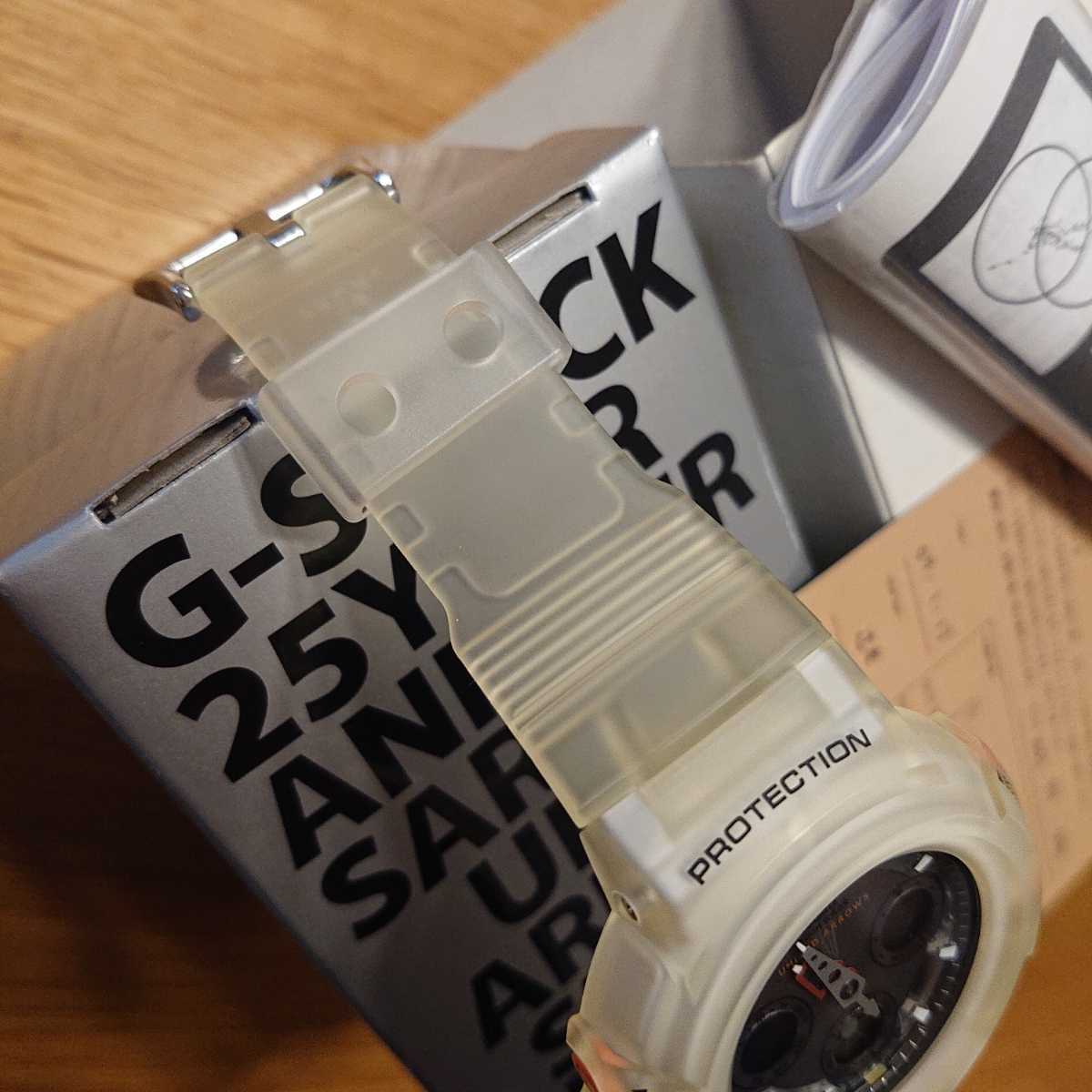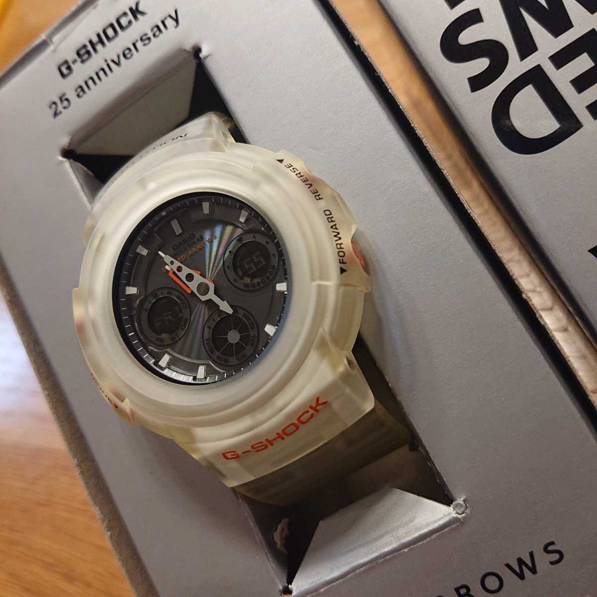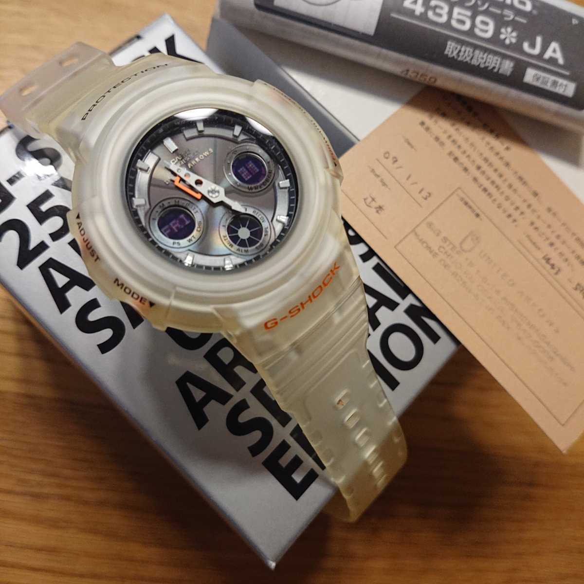 CASIO Gショック 2008年 発売 ユナイテッドアローズ別注 25周年記念限定 AWG-525UAJ-7AJR 新品、未使用品 箱、取説付、電池交換カード付き ガラス、裏ブタ保護シール付 スケルトンモデルなので新品でもキバミが有りますがこのモデルにしてはキバミが少ない方だと思います。