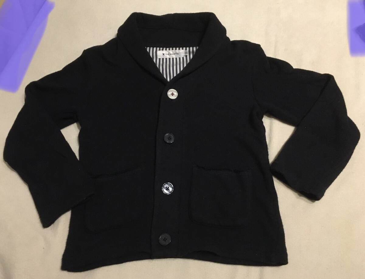 中古 THE SHOP TK 裏毛ショールカーディガン ネイビー 130cm 定価3289円