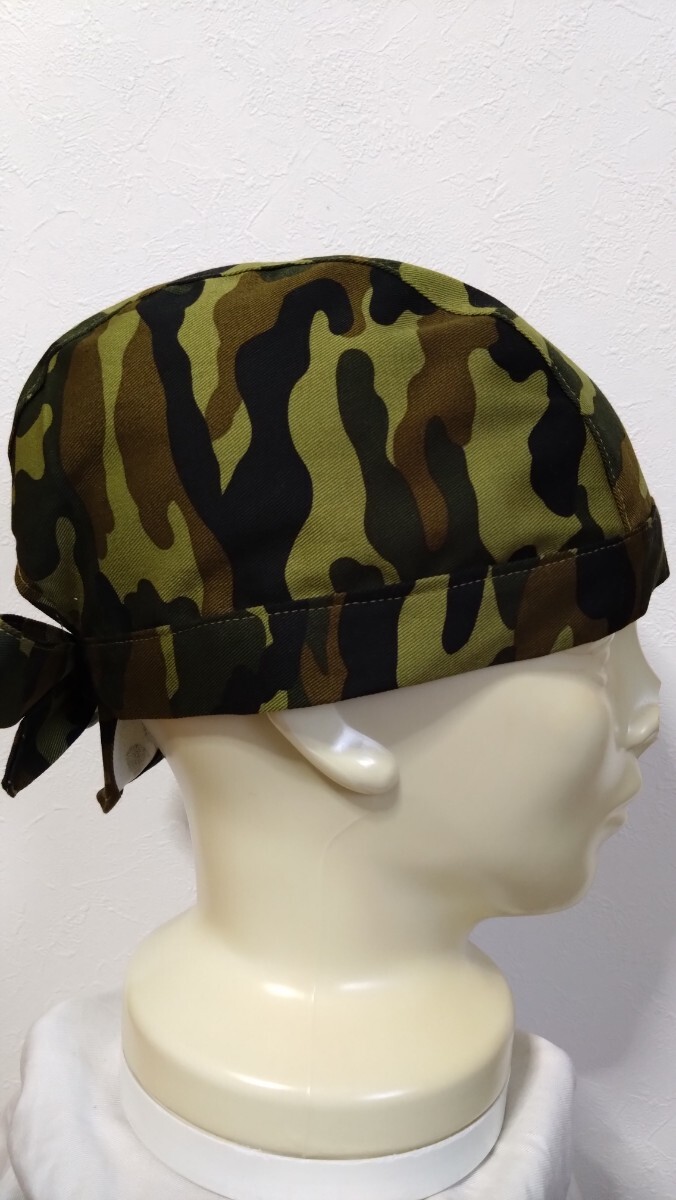 短★バンダナキャップ★ハンドメイド 迷彩 カモフラ 抹茶