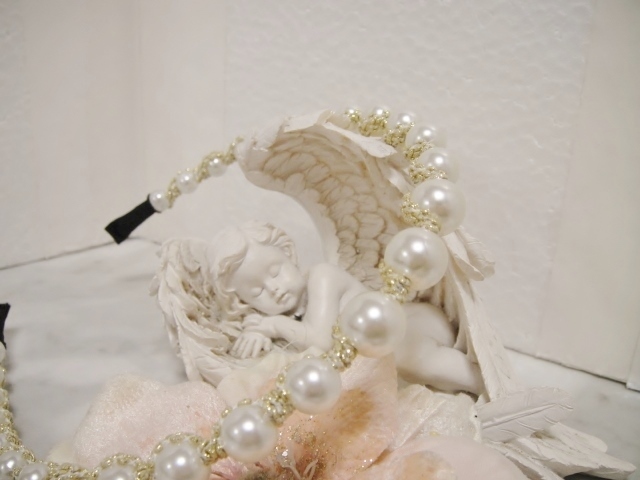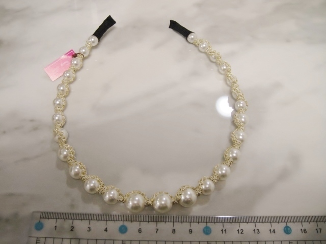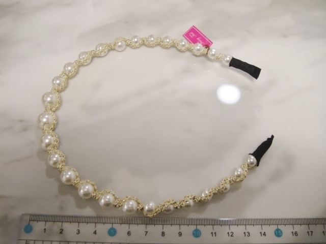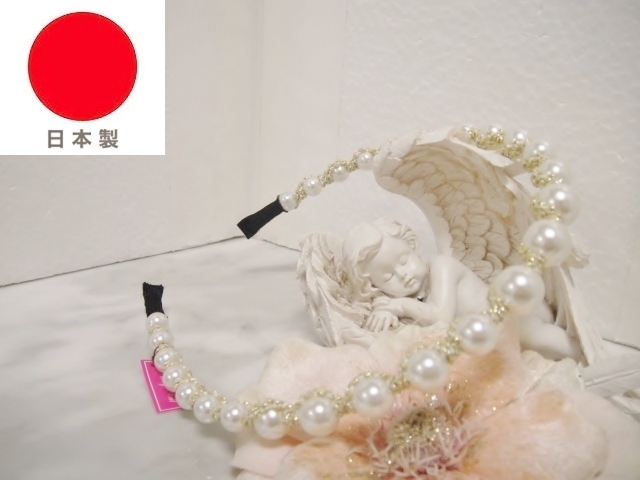 ♪ 新品 日本製 Made in Japan カチューシャ『高品質/細/ゴージャス/26連パール&金糸巻きコンビ』♪