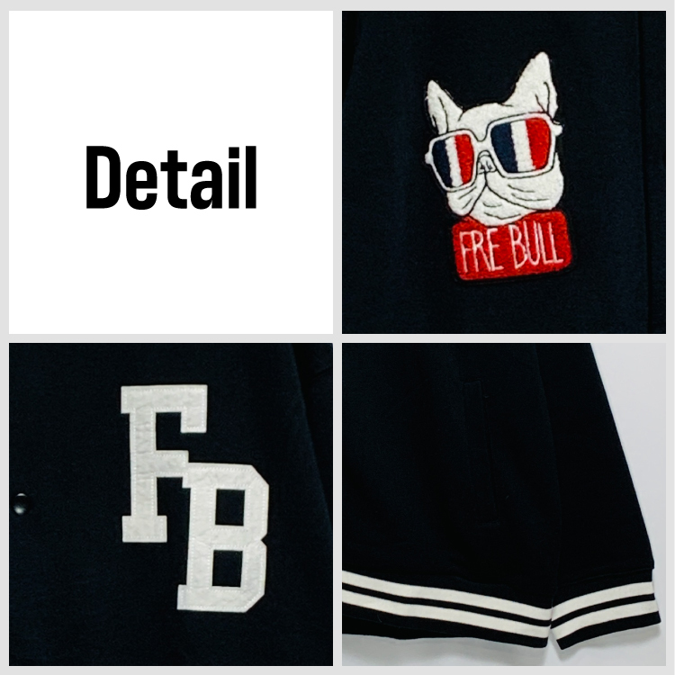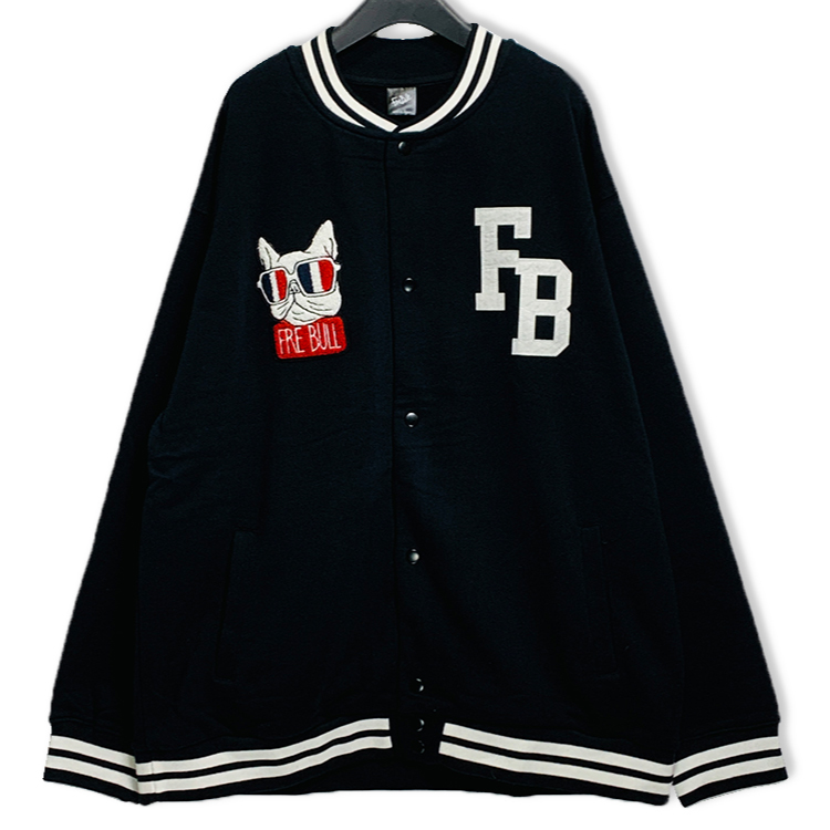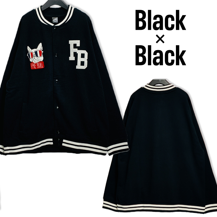 3Lサイズ ブラック×ブラック メンズ 大きいサイズ スタジャン FREBULL フレブル 黒 切り替え カラーブロック スウエット生地