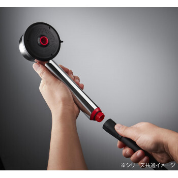 | レバーで水流切り替えが可能です。3つのボールを搭載したコアンダシステムです。水の軌道が回転するボールに当たることで変化し、1回転で強弱のショットを3回繰り出します。毎分約1500回転から放たれる約4500回の刺激は、まさに未体験の気持ちよさ。肩や腰はもちろん、足や足裏、頭など気になる部位にあてるだけ。一度浴びるとクセになる気持ち良さです。 |