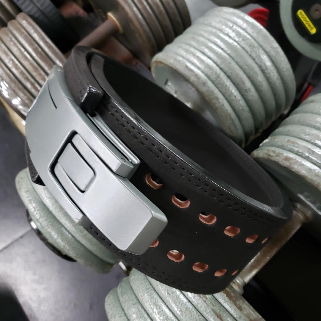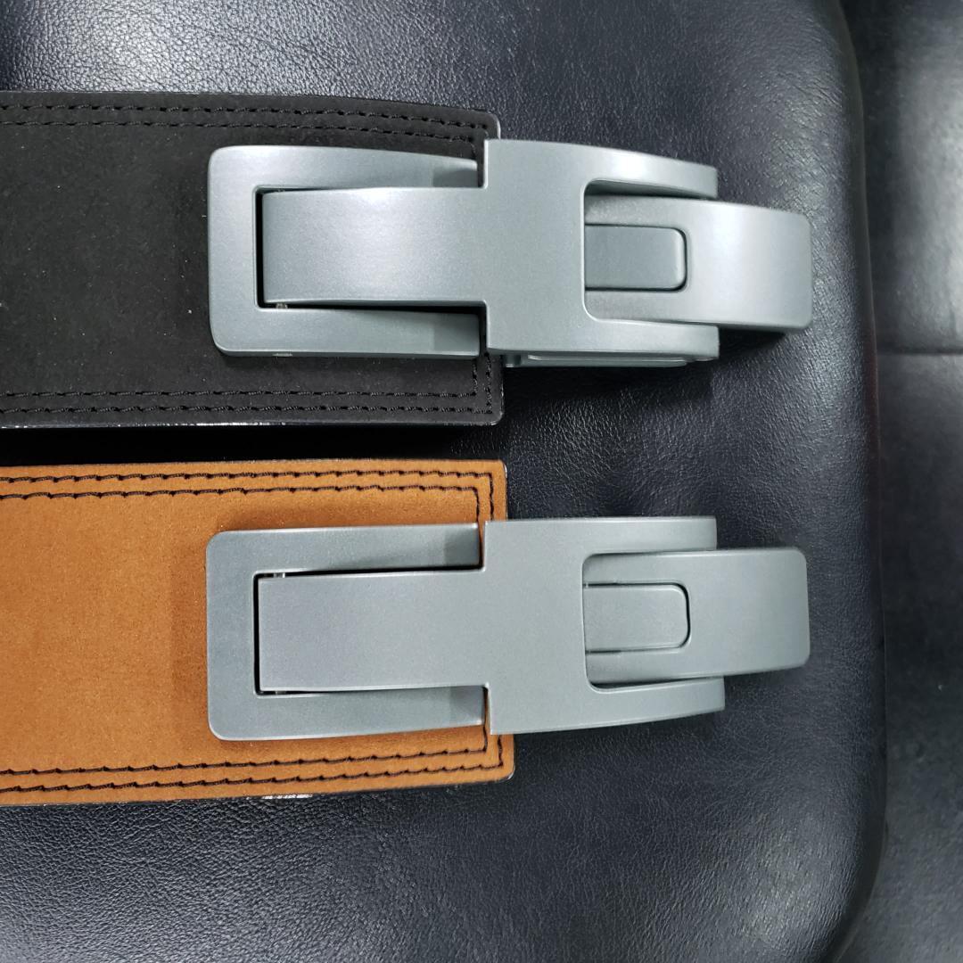 レバーアクションによりワンタッチで着脱締め付け可能なトレーニングベルトになります。