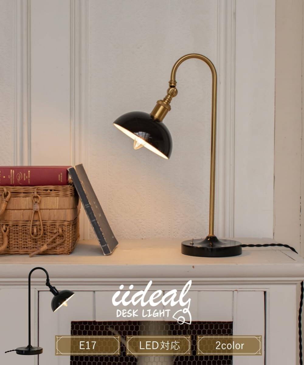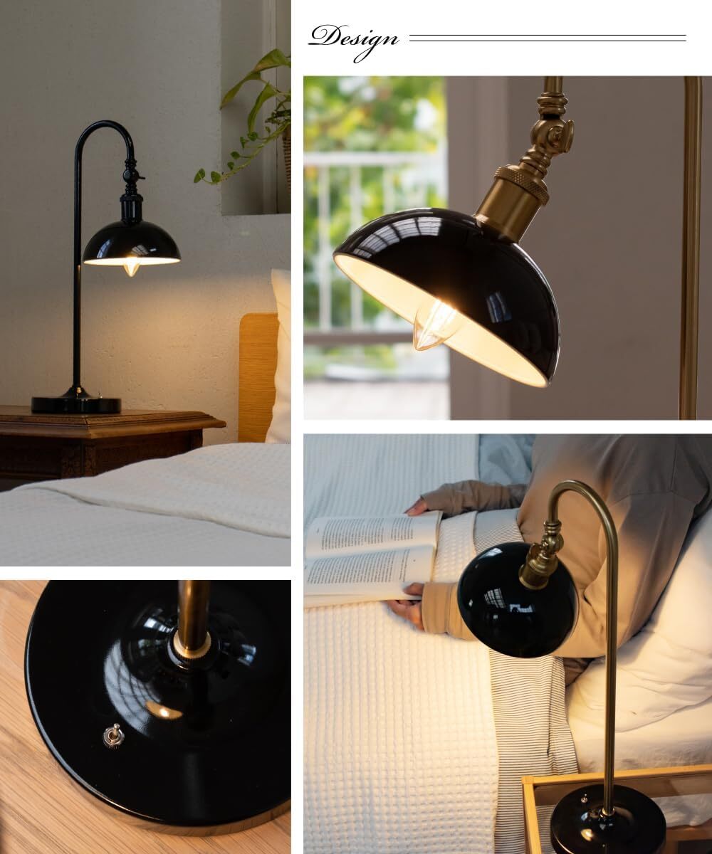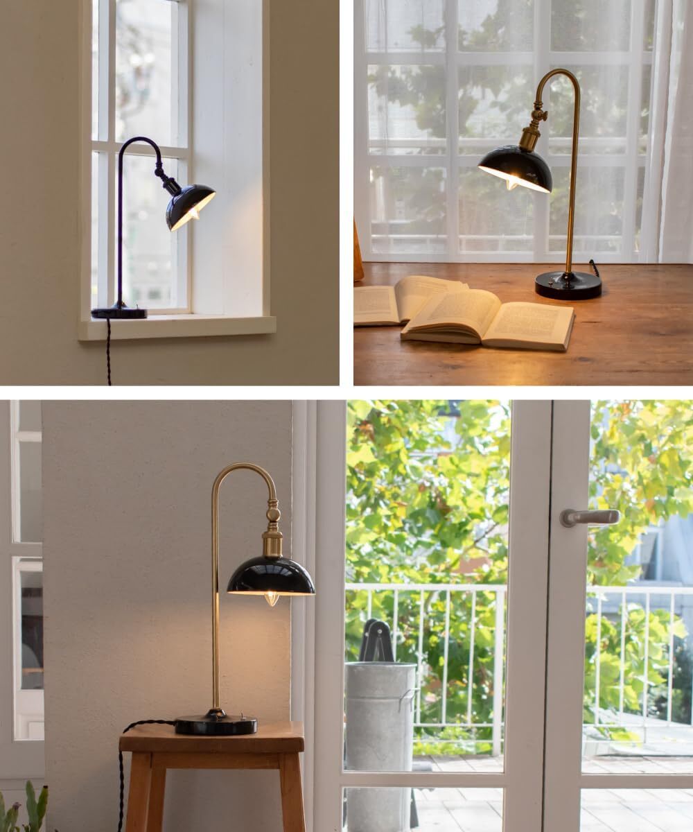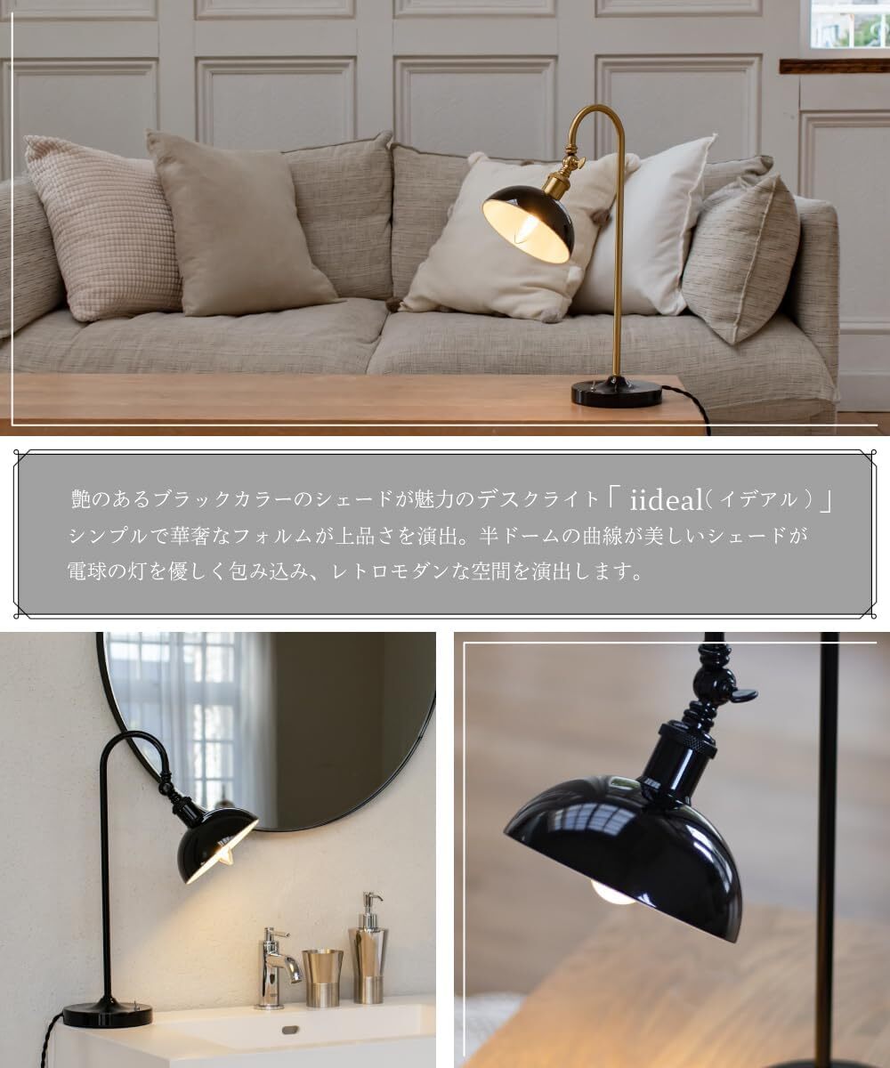 ・艶のあるブラックカラーのシェードが魅力のデスクライト。シンプルで華奢なフォルムが上品さを演出。半ドームの曲線が美しいシェードが電球の灯を優しく包み込み、レトロモダンな空間を演出します。