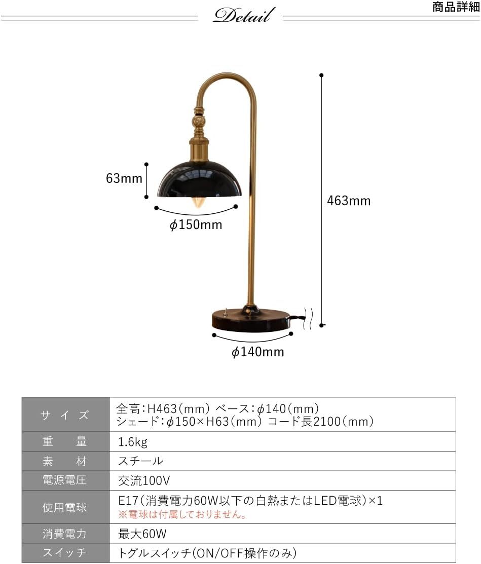 ・【消費電力】最大60W 【使用電球】E17 (消費電力60W以下の白熱またはLED電球)×1 ※電球は付属しておりません。