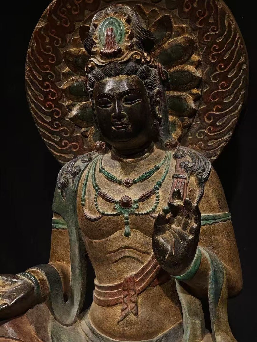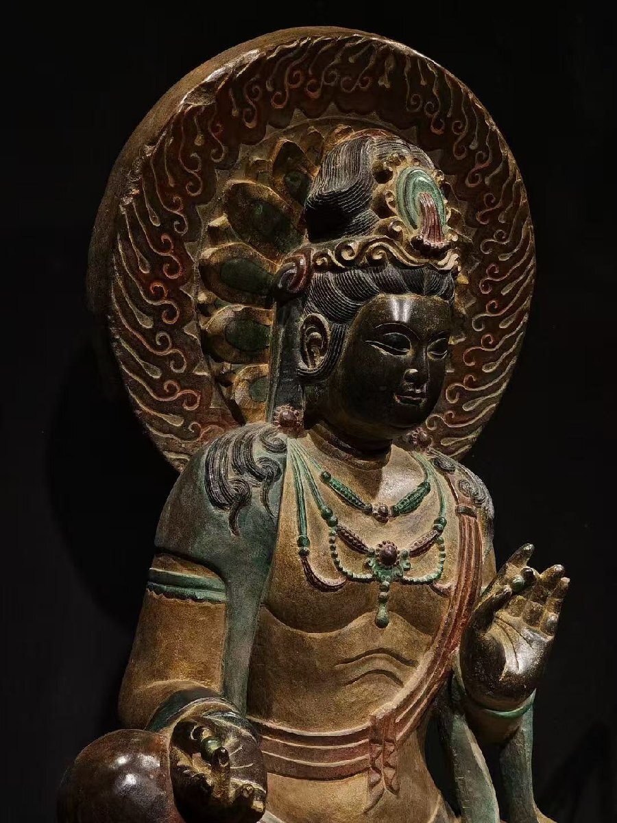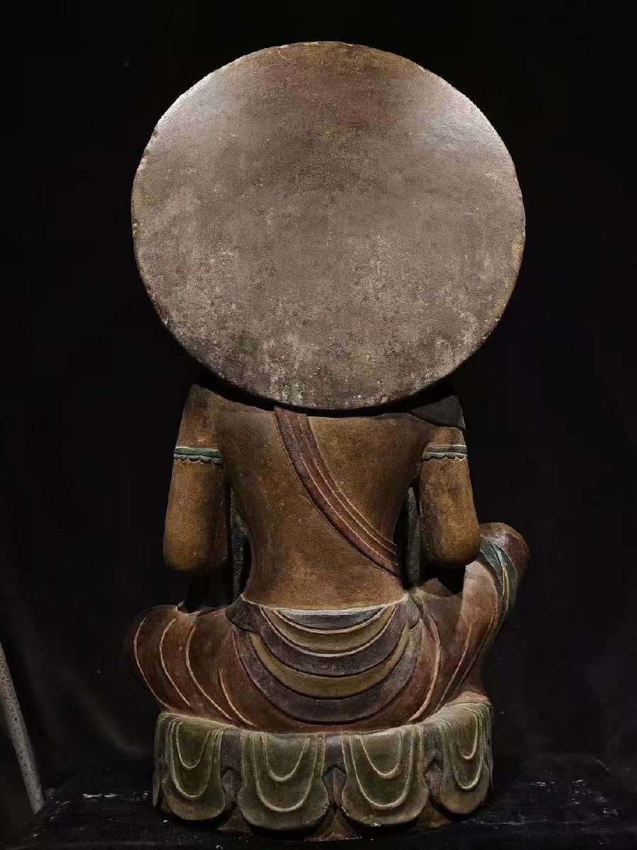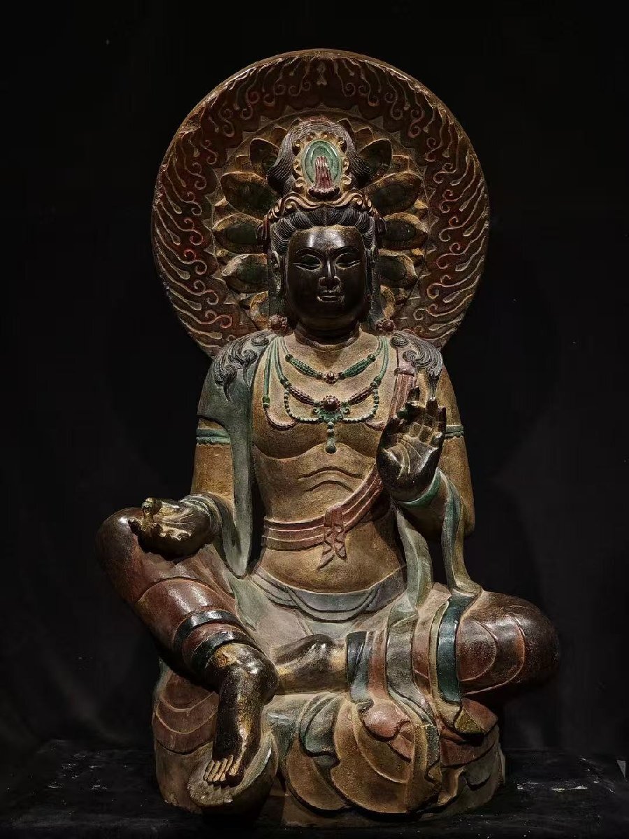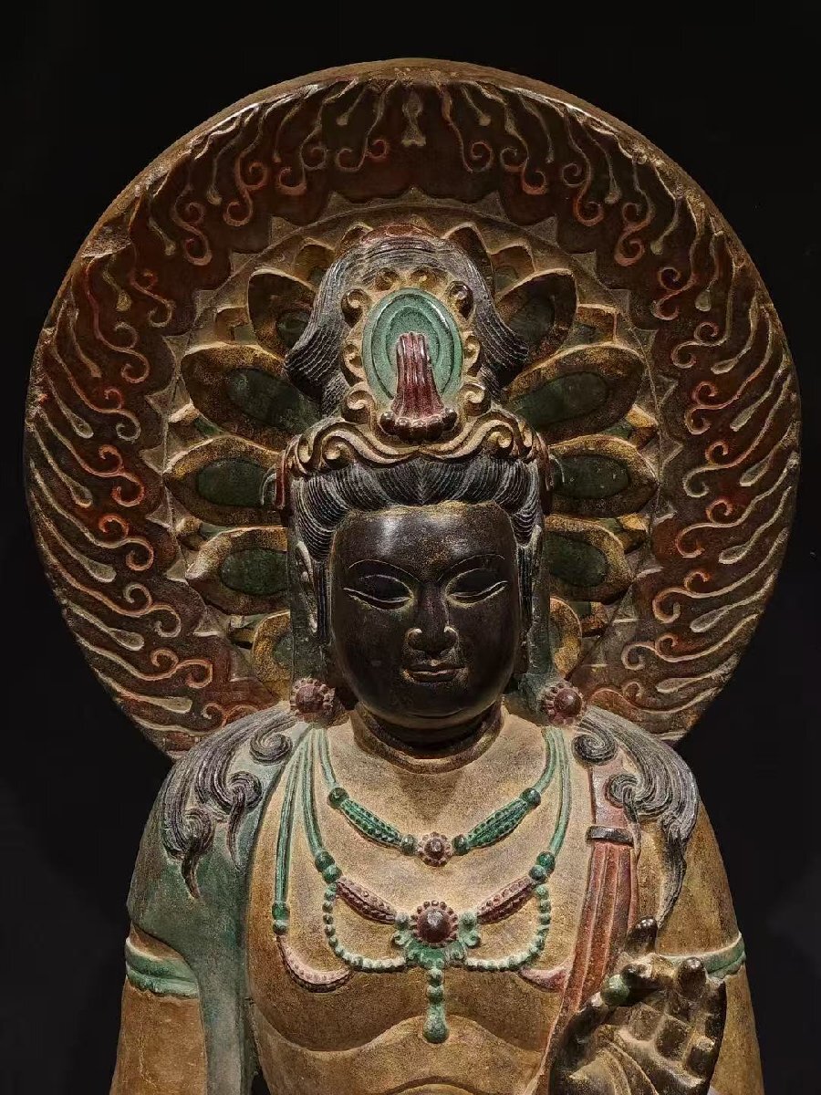 ■観心・時代旧蔵■K859唐時代 青石彩絵大観音造像 青石細工彫刻★仏教古美術★仏像★廃寺旧蔵★廃寺買出品 高さ123cm横幅70cm奥行き60cm