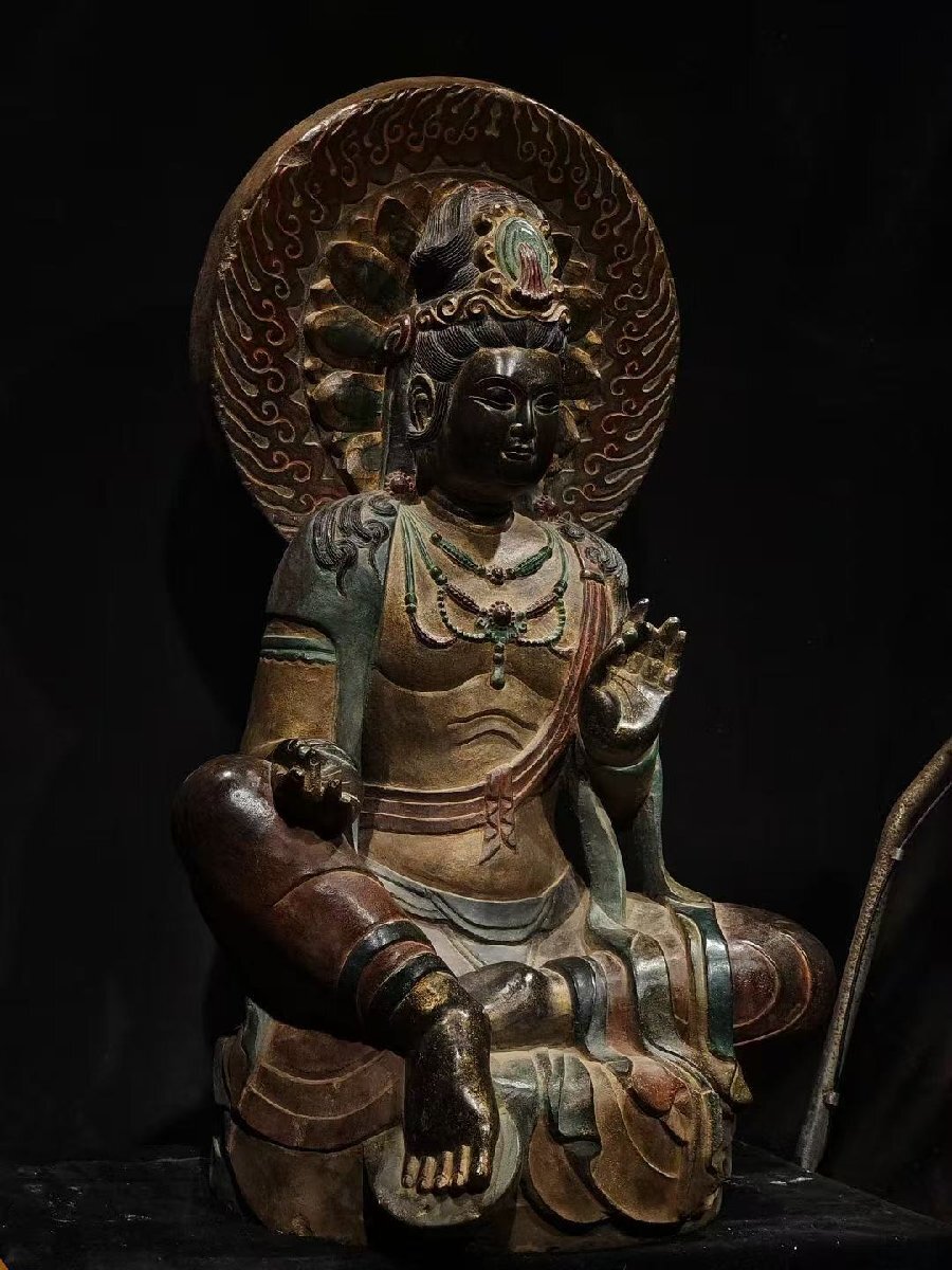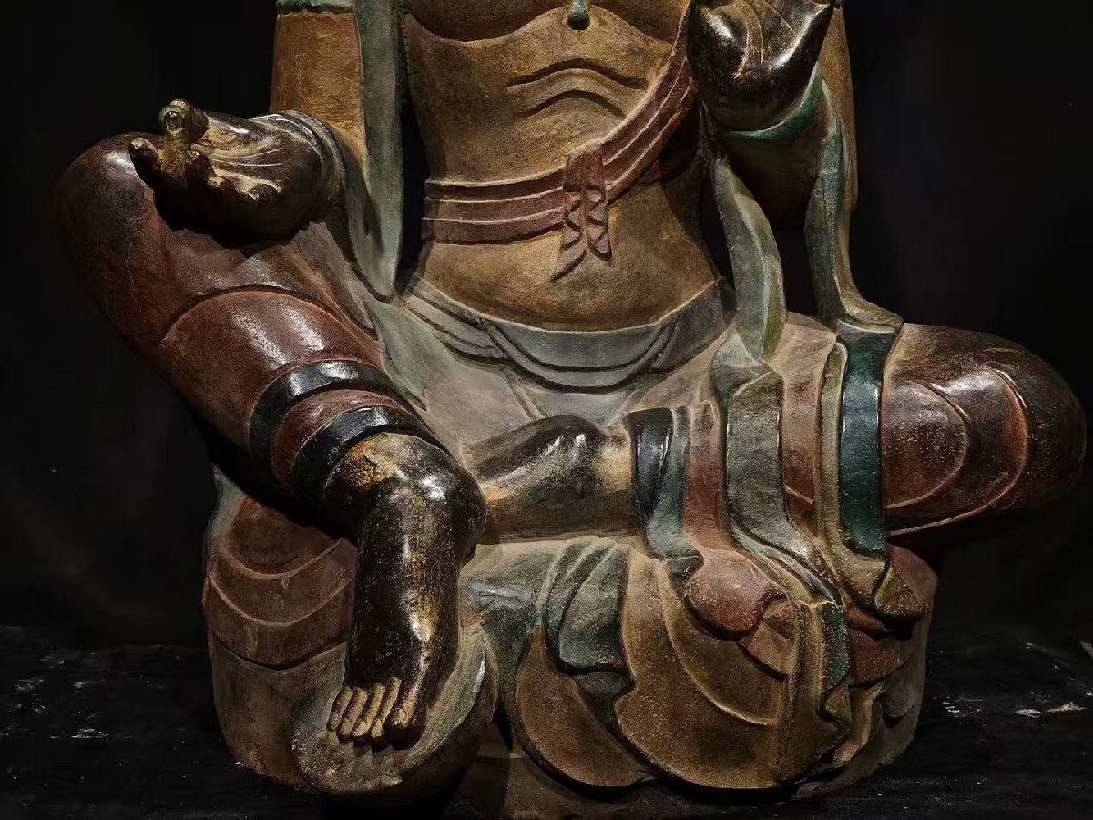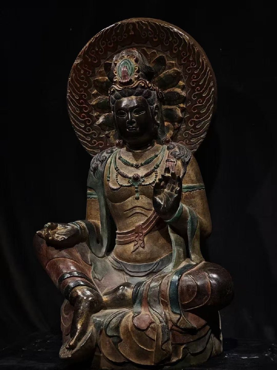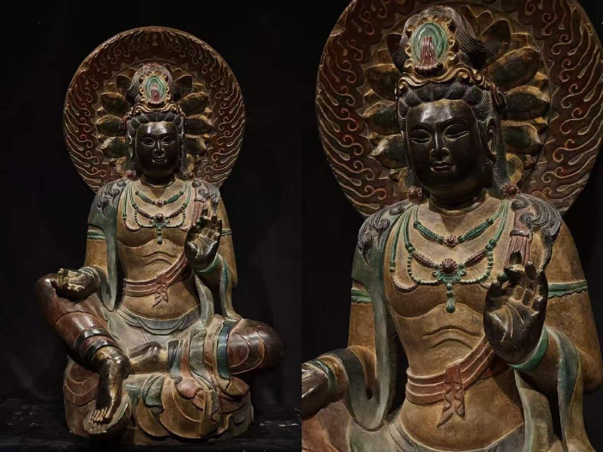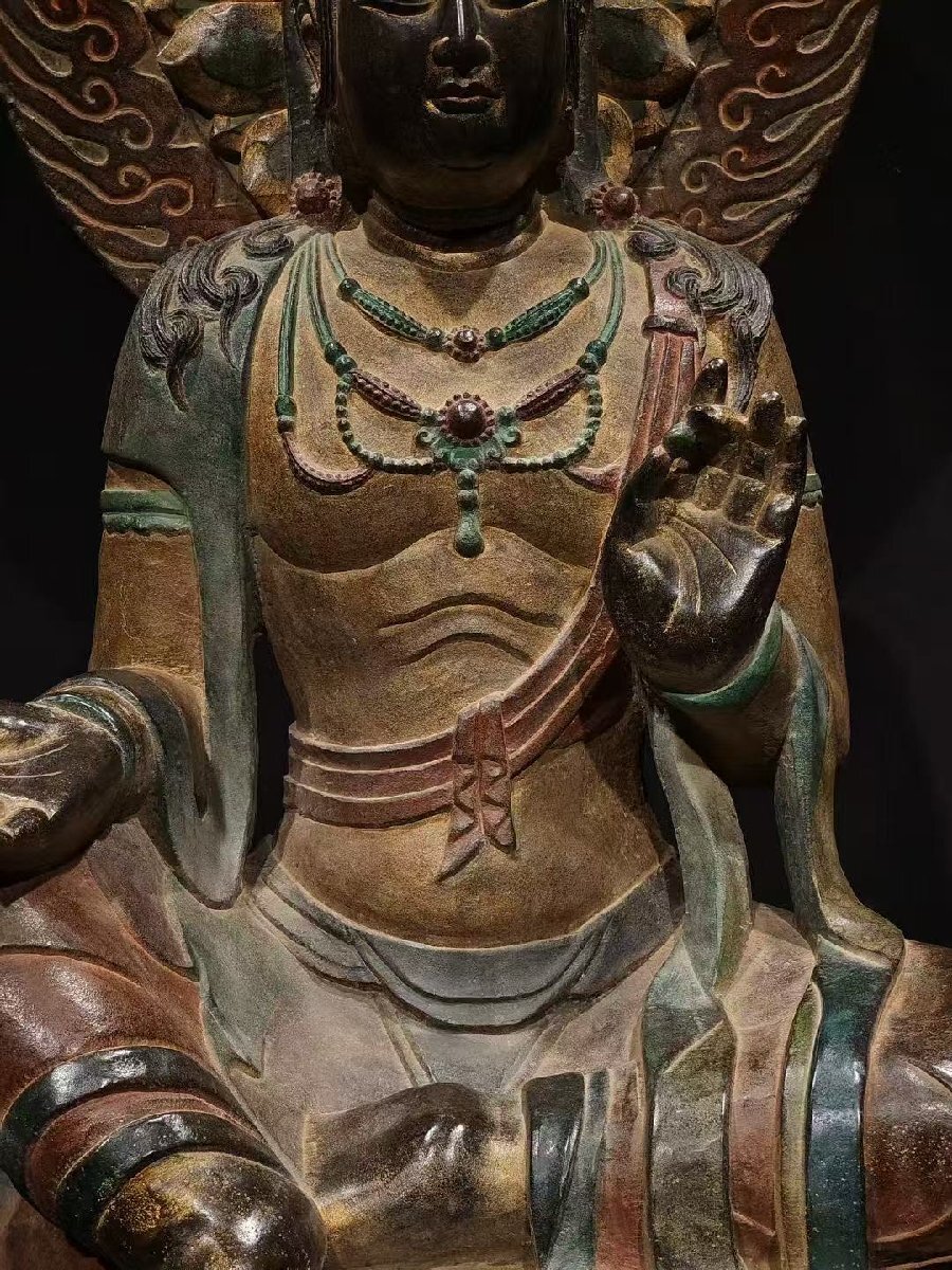 ■観心・時代旧蔵■K859唐時代 青石彩絵大観音造像 青石細工彫刻★仏教古美術★仏像★廃寺旧蔵★廃寺買出品 高さ123cm横幅70cm奥行き60cm