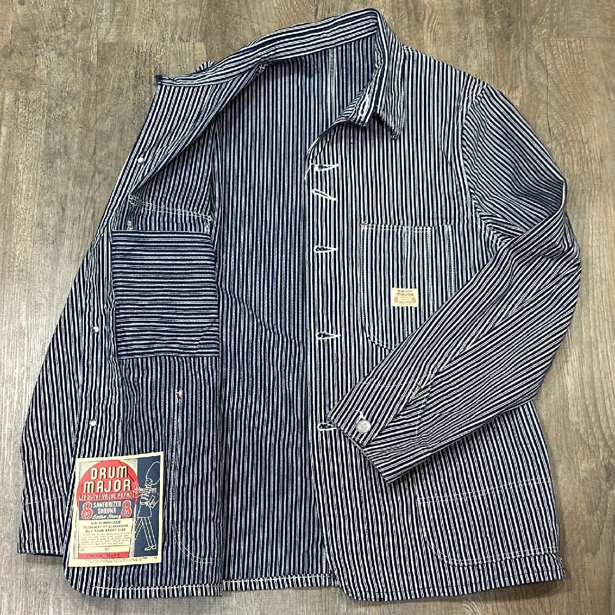 ドラムメジャー リバティーストライプ ワークコート アメカジ カバーオール DM14124 421)ネイビー 38(M)サイズ アウター