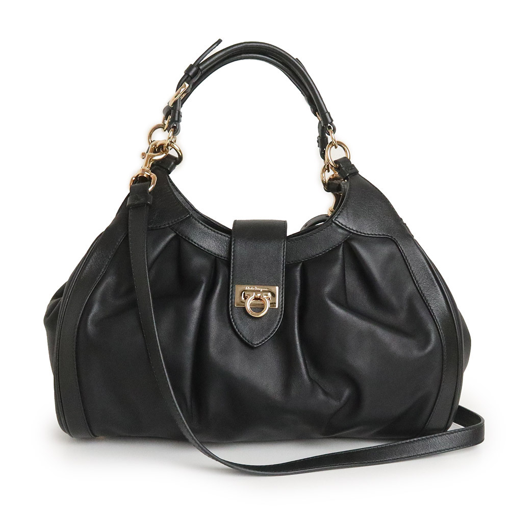 (中古)サルヴァトーレフェラガモ Salvatore Ferragamo ガンチーニ 2WAY ショルダー トートバッグ レザー ゴールド金具 AU-21 D228