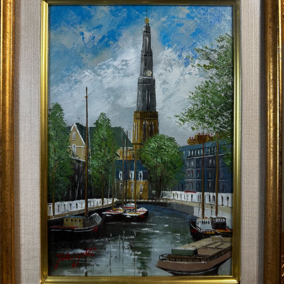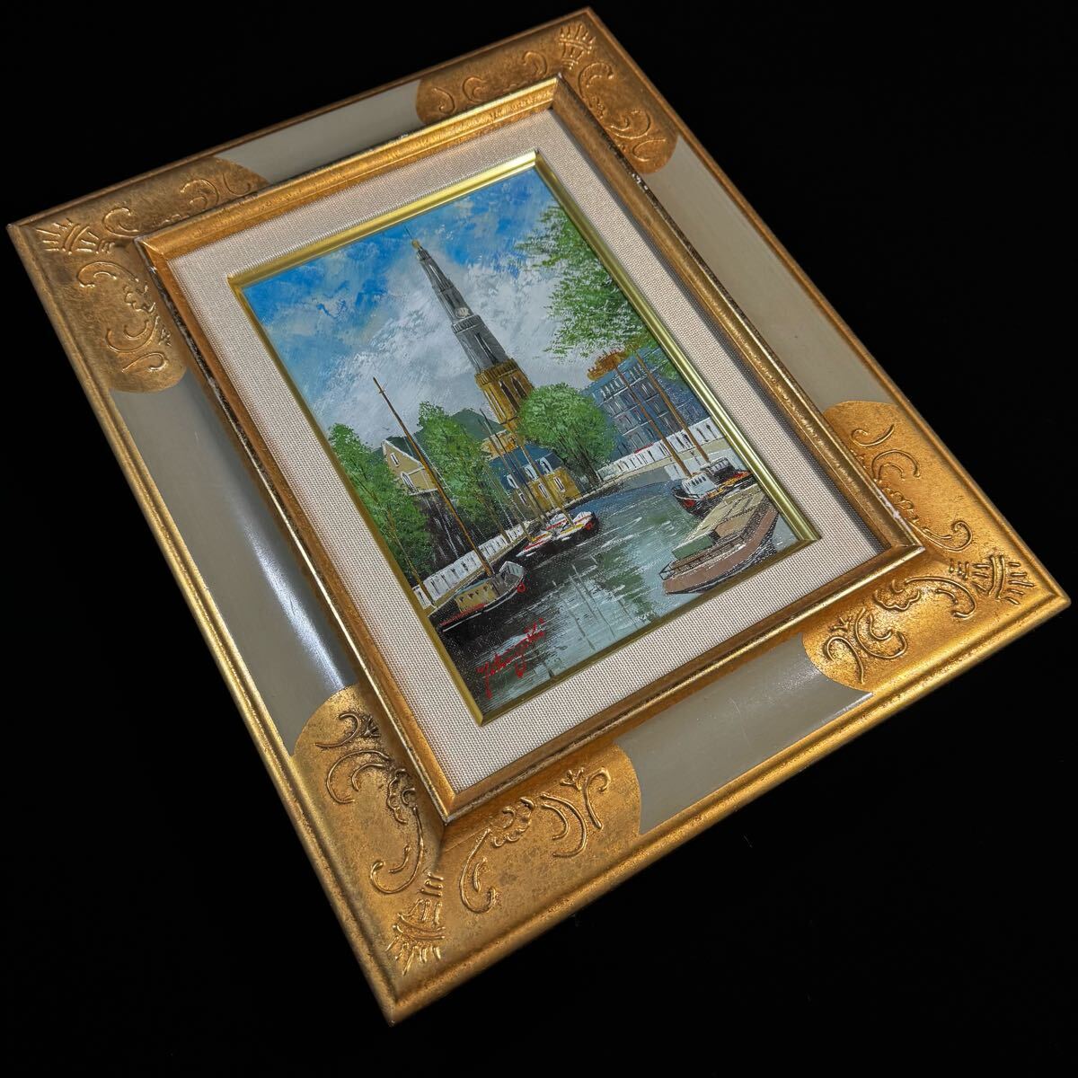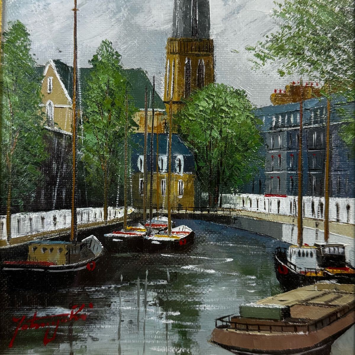 真作 中島達幸 『アムステルダムの運河』 油彩 SM号 豪華額装 應美会会員 現洋会会友 油彩画 風景画