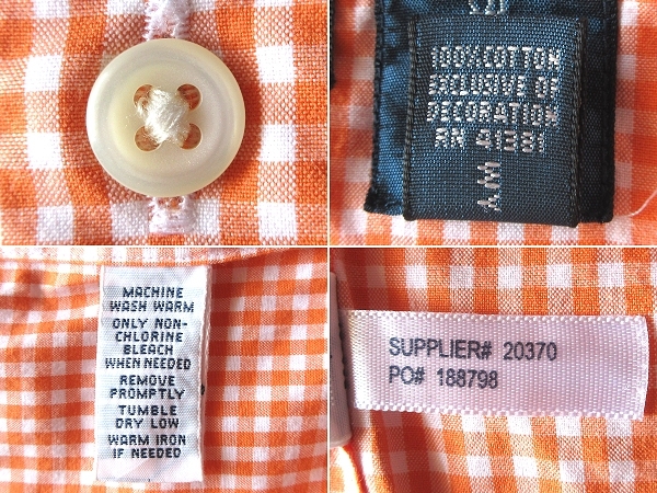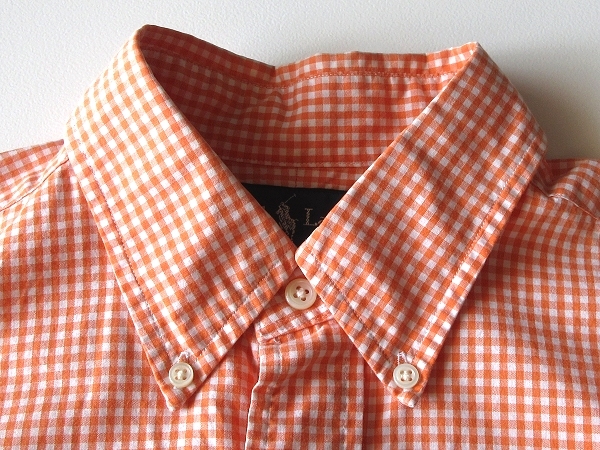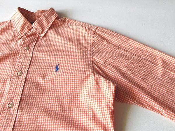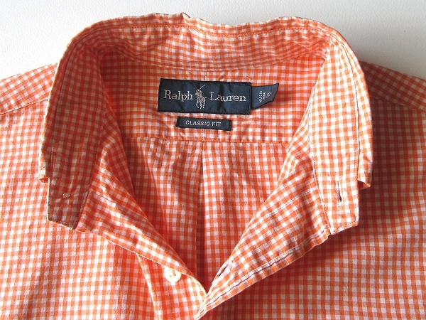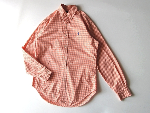 ネコポス可 Ralph Lauren ラルフローレン CLASSIC FIT ポロポニーロゴ刺繍 ギンガムチェックBDシャツ S オレンジ 白 RN41381正規品 USA企画