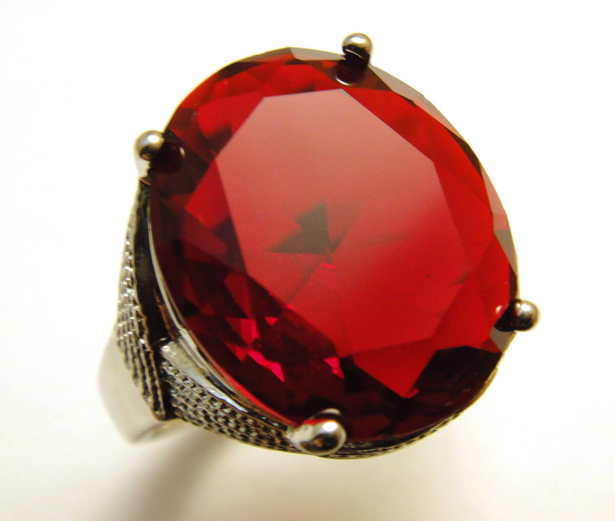SP◆21号◆美品・洗浄済SILVER925 合成石 レッドストーン ヴィンテージリング 925 | |||