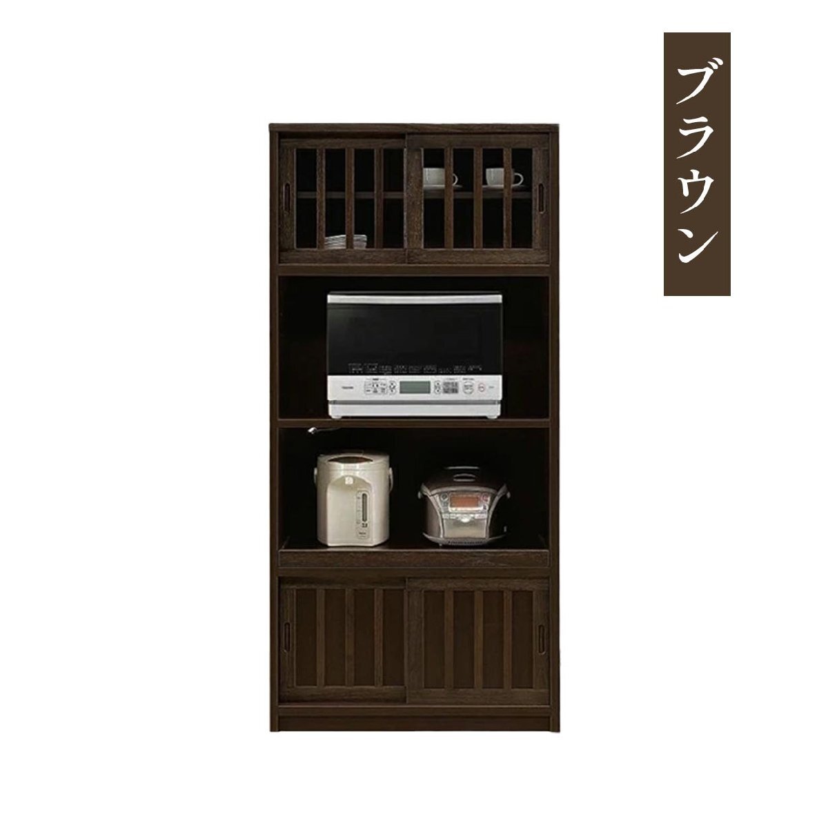 食器棚 レンジ台 キッチンボード 幅80cm 80cm幅 レンジラック カップボード キッチン 収納 ブラウン