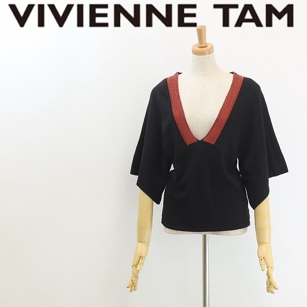 ◆VIVIENNE TAM ヴィヴィアンタム ワイドスリーブ コットン ニット トップス 黒 ブラック×ブラウン 0 | |