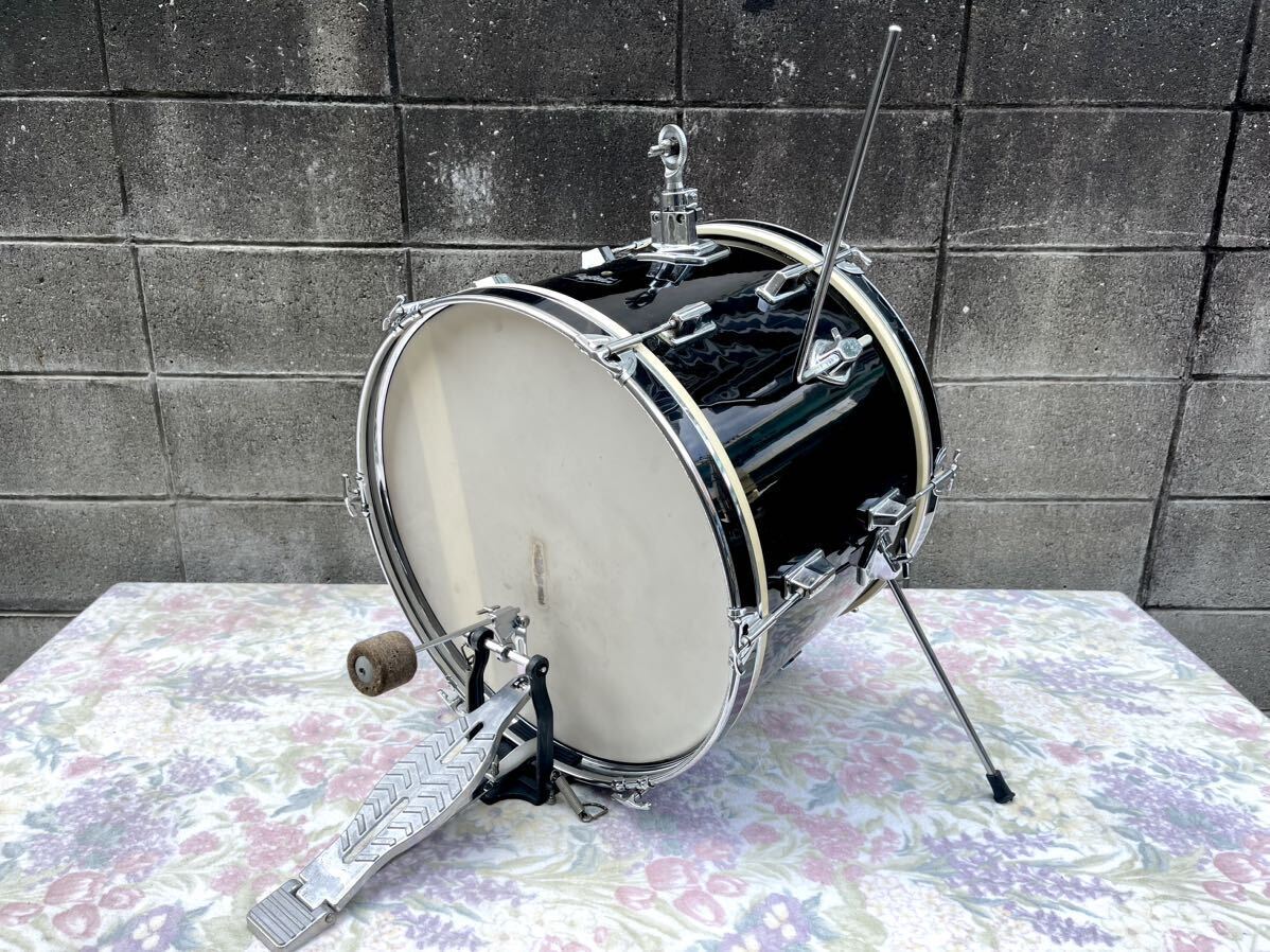 ハイタム(ロータムかもしれません)とバスドラムを繋ぐ部分と、シンバルを設置するための金具が欠品しているようでドラムセットとして組み上げることが現状できませんでしたので画像の状態での出品となります。