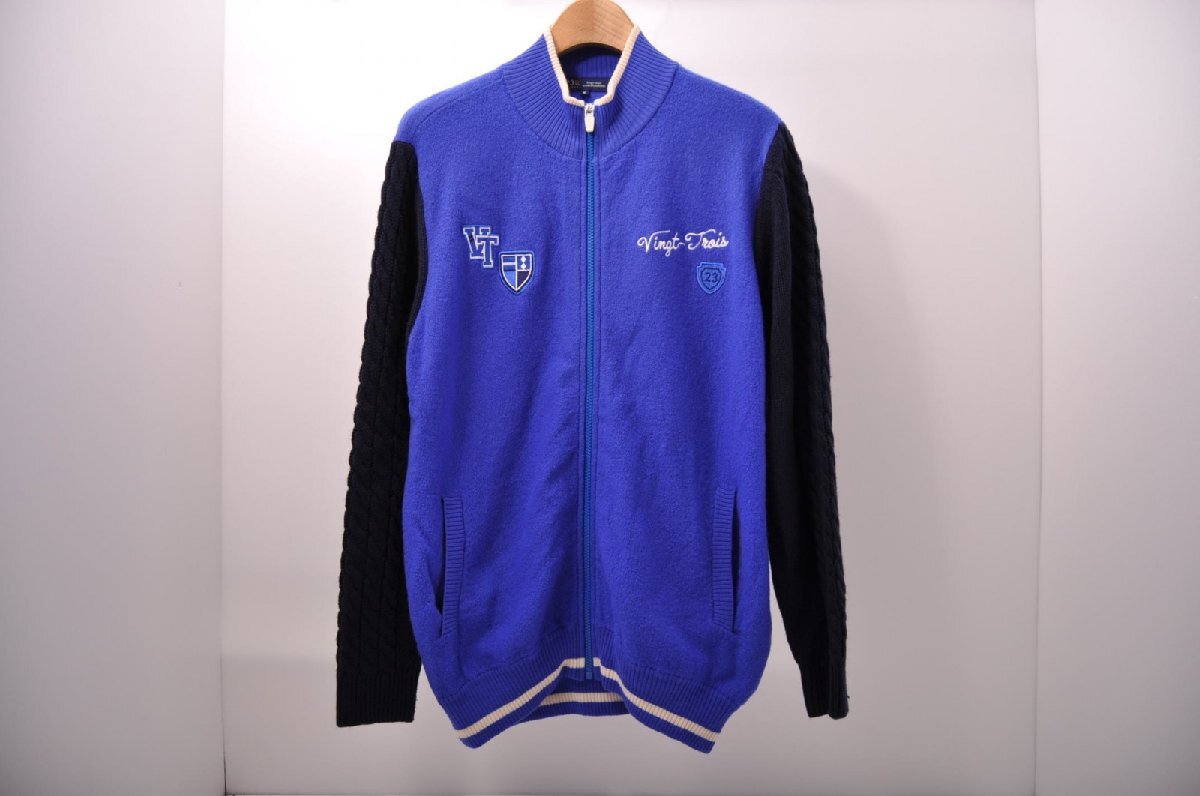 coco 中古【値下げ】 23区ゴルフ 23区GOLF メンズ ニットアウター M 青×紺 ブルー×ネイビー 長袖フルジップ 秋冬春 85120