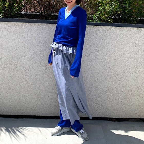 本作はフランス軍のブルーウールパジャマをパンツ付きのワンピースにアップサイクルしたアイテム。