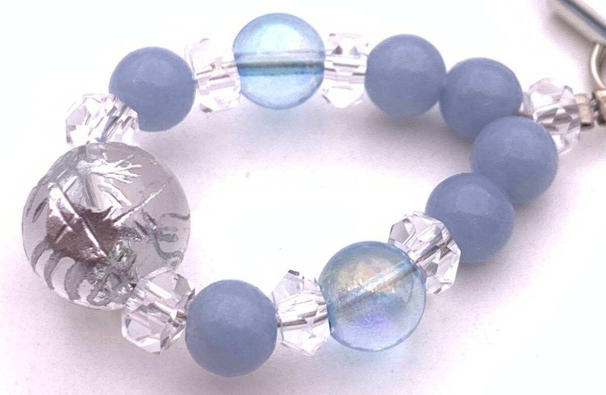 天然石水晶銀彫り青龍&エンジェライト&アクアオーラブルーのストラップ