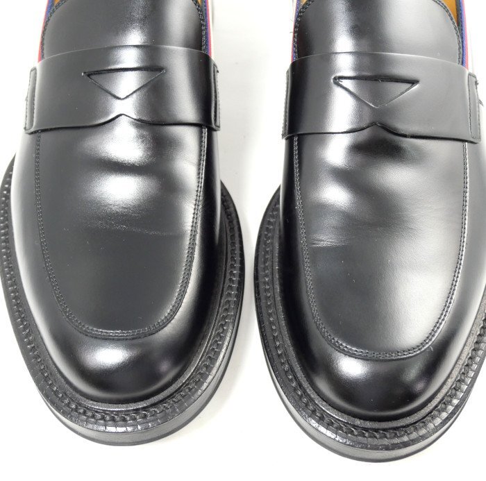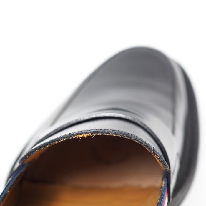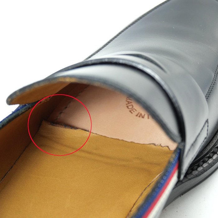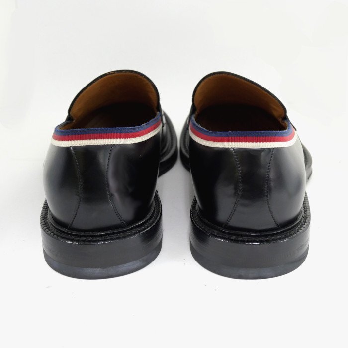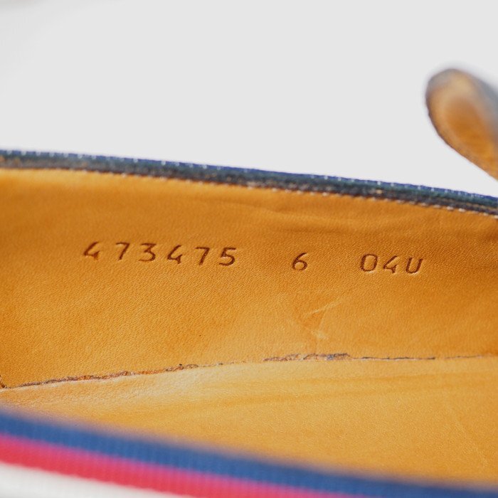 未使用展示品 GUCCI グッチ レザー シェリーライン ローファー 6 ブラック 収納袋・ケース付 です。 上質なレザーを使用したベーシックなローファーシューズです。グッチのアイコンであるシェリーラインがグッチの伝統をさりげなく表現しています。 内側ソール一部に剥がれ、履き口に若干の擦れがございますが、使用感はあまりなく全体的に綺麗な商品です。皆様のご落札をお待ちしております。 |