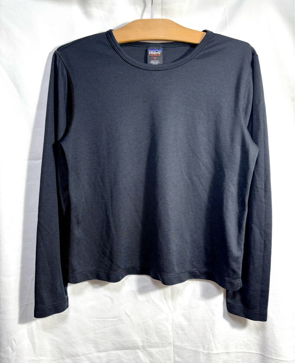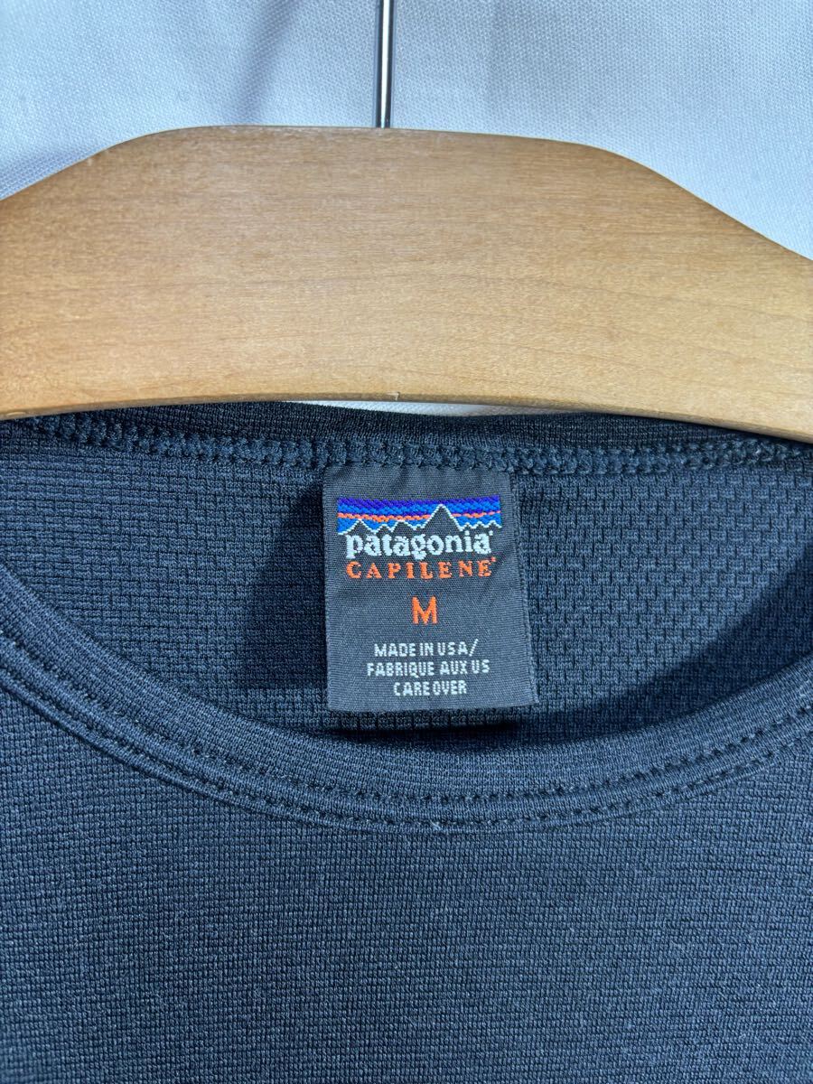 ■ Patagonia パタゴニア CAPILENE キャプリーン 長袖 Tシャツ インナー カットソー 古着 USA製 ブラック サイズM アウトドア レジャー ■