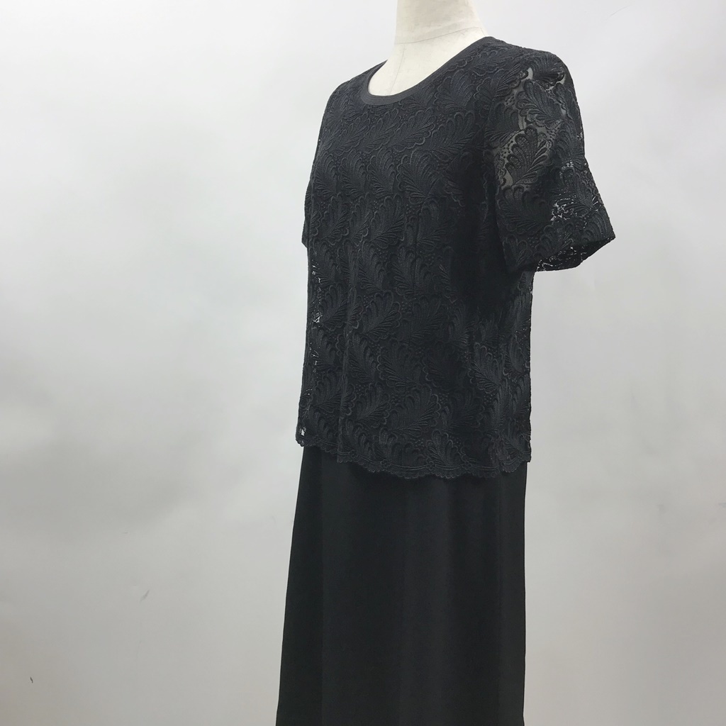 商品: ELLA/エラ 半袖ワンピース フォーマル ミモレ丈 裏地あり ブラック サイズ11 レディース