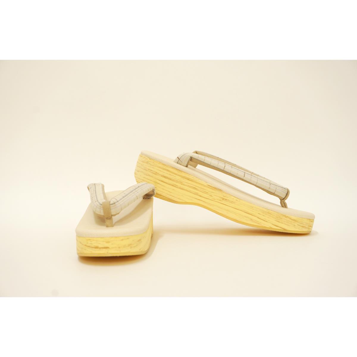 軽量でクッション性に優れたEVA台で、かかとは路面などの水跳ねを少しでも抑えるように斜めにカットされた女性用の草履です。
