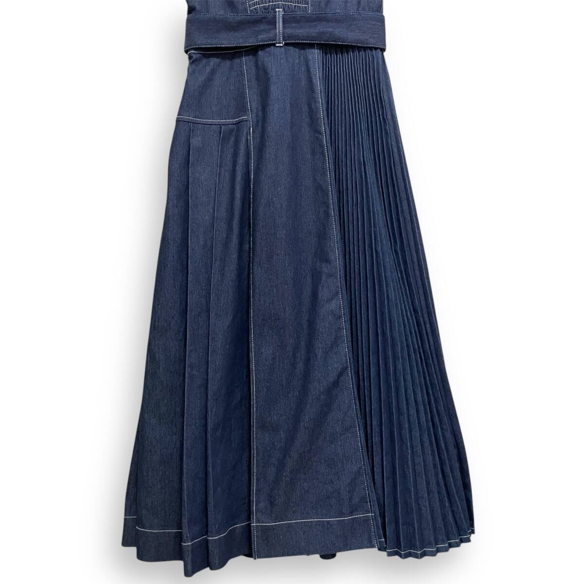 商品名 : eimy istoire エイミーイストワール デニム プリーツ マキシ ロング ワンピース S