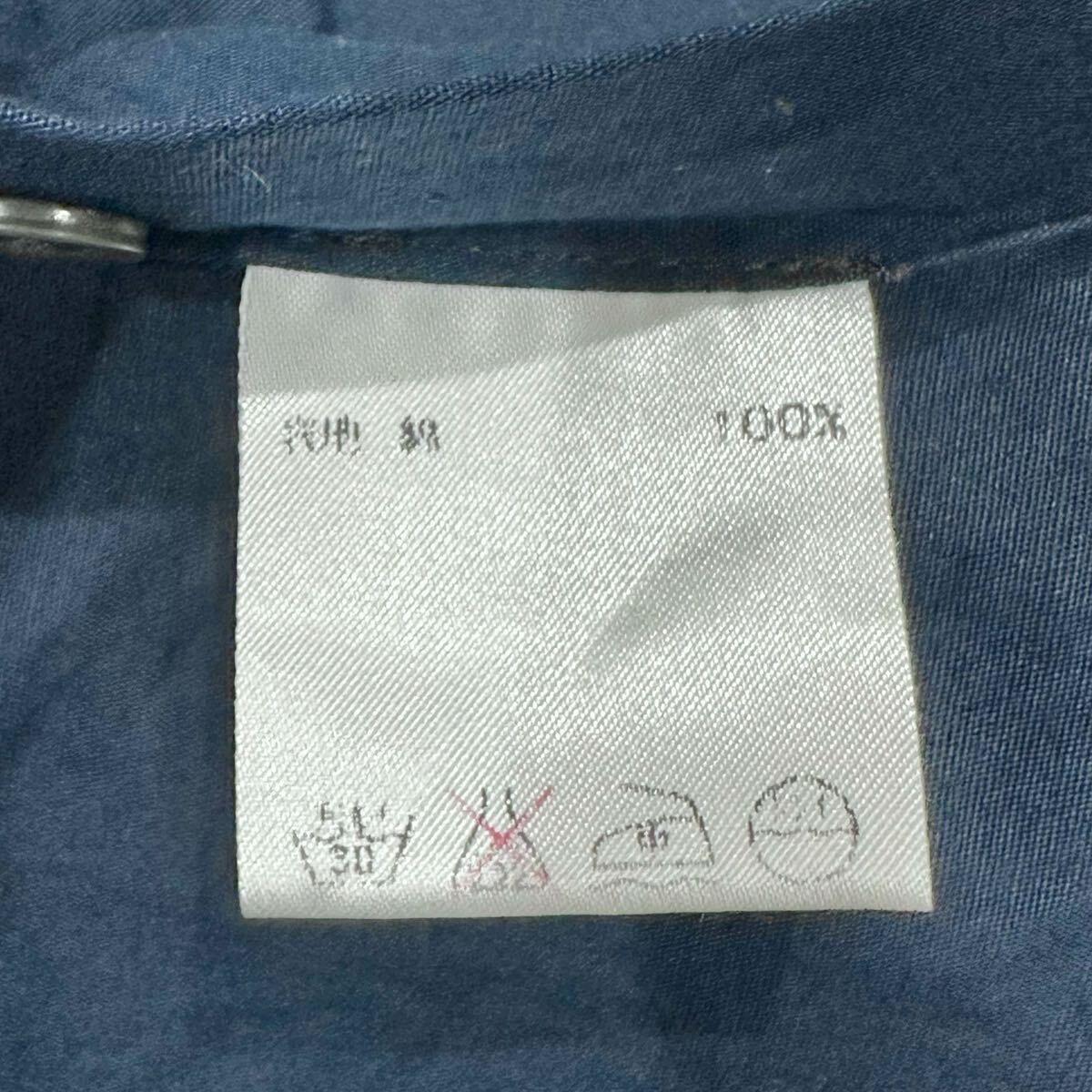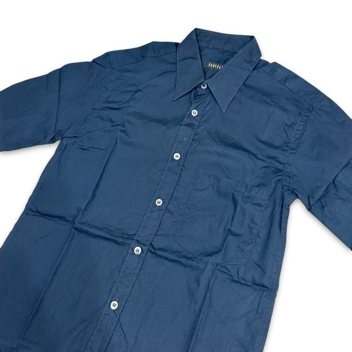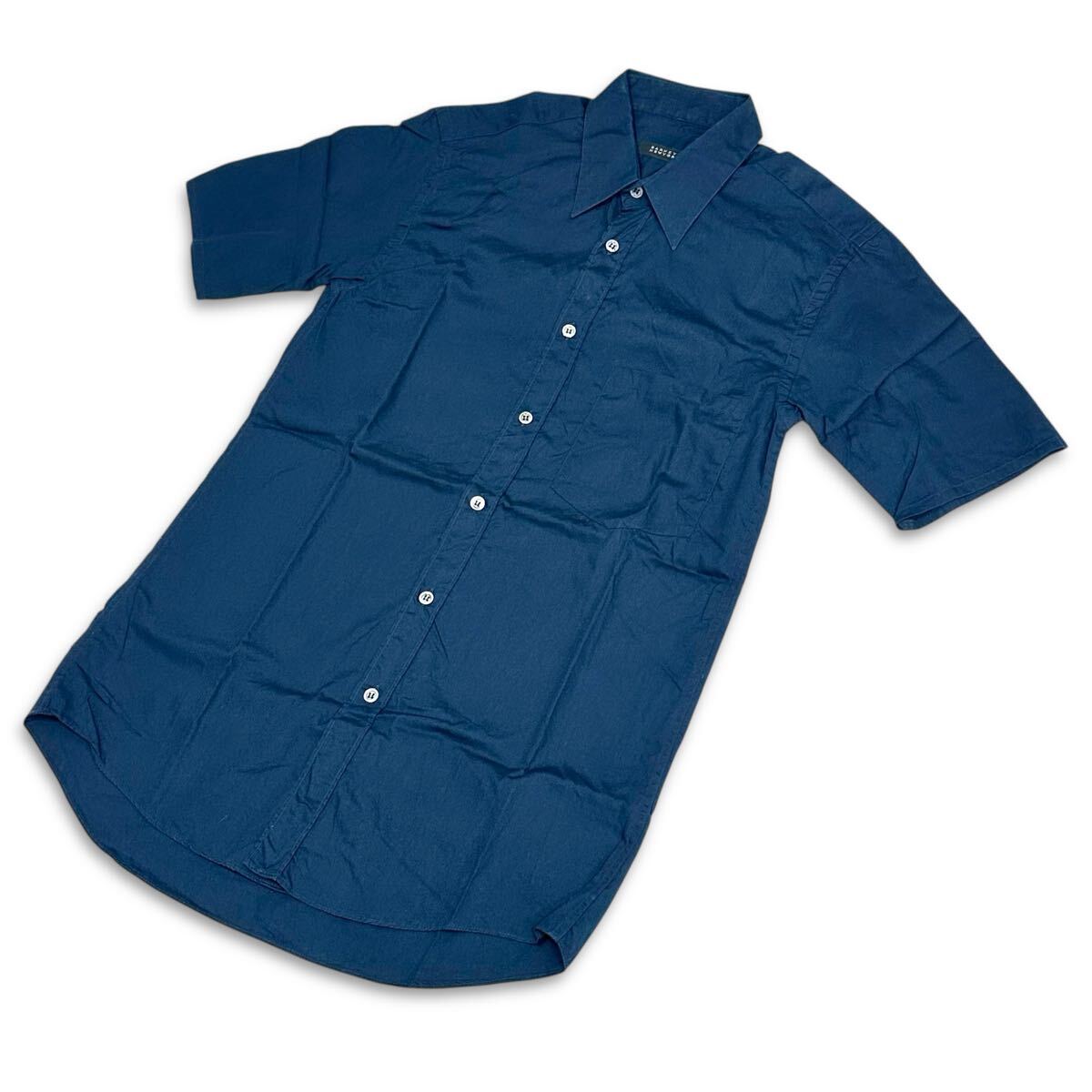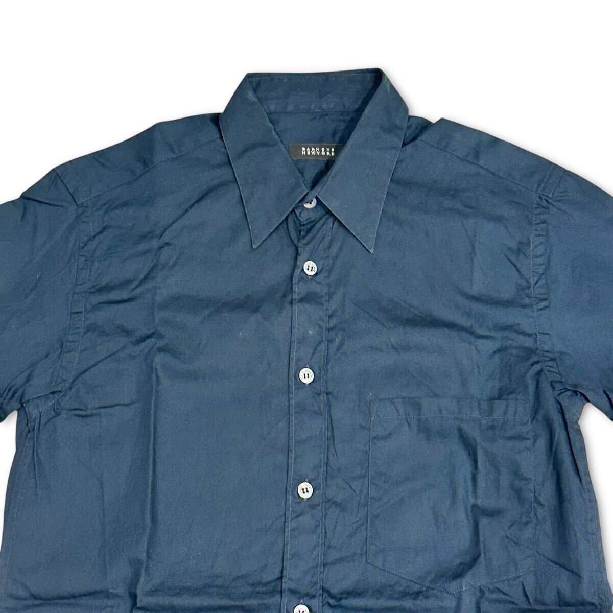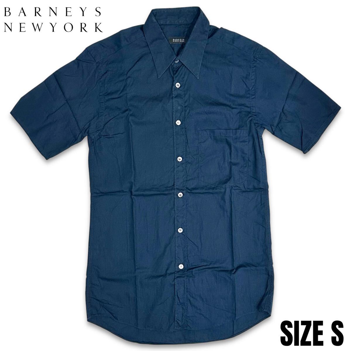 BARNEYS NEW YORK (バーニーズ ニューヨーク) イタリア製 綿100% コットン 胸ポケット 半袖 シャツ 紺 ネイビー S