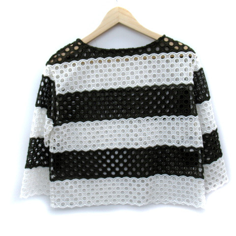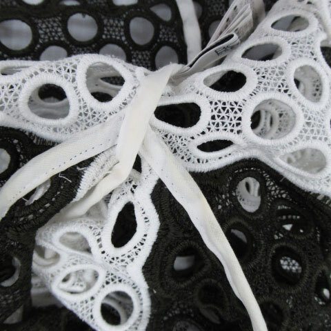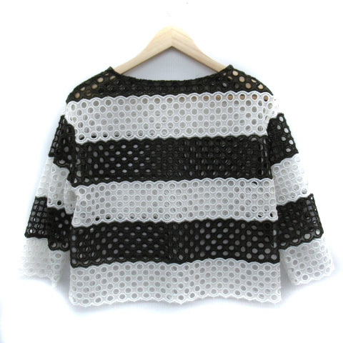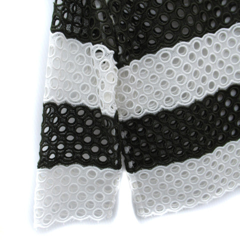 ボディドレッシングデラックス カットソー 七分袖 ラウンドネック レース 刺繍 ボーダー柄 38 M カーキ 白 ホワイト /SM18 レディース