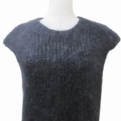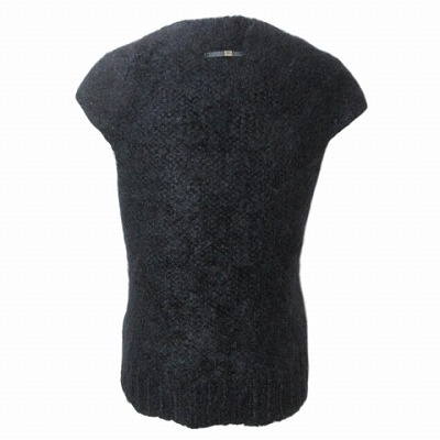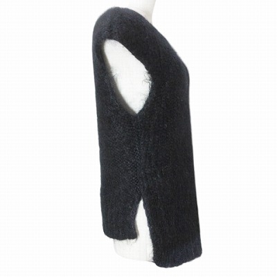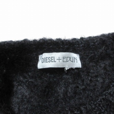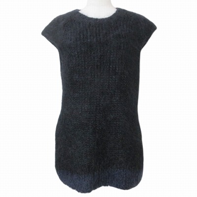 ディーゼル DIESEL +EDUN モヘヤニット セーター キャップスリーブ 厚手 バイカラー XS 黒 紺 X レディース