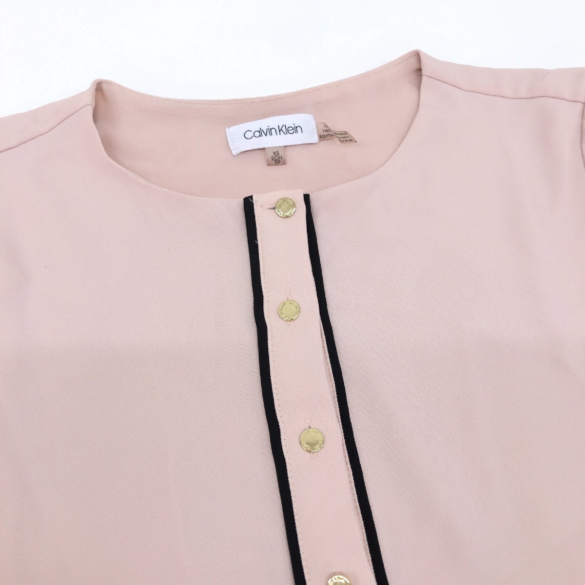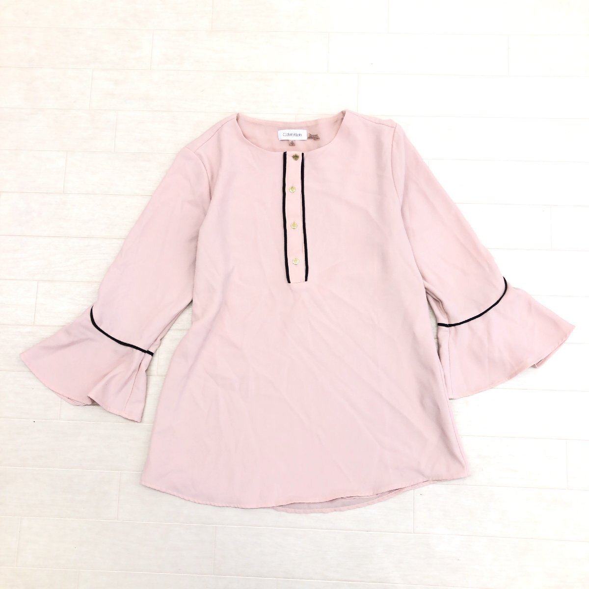 Calvin Klein カルバンクライン ストレッチ ベルスリーブ ブラウス XS(JP:S相当) ピンク カットソー シャツ プルオーバー CK レディース