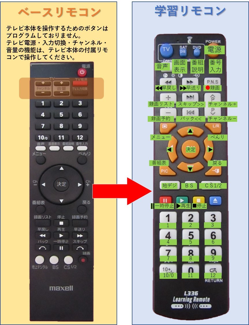 【発送について】速やかな発送を心掛けておりますが、発送ができない日もありますので、出荷日情報を必ずご確認ください。 ↓↓リンクを確認↓↓ 最新の出荷日情報(自己紹介コメント欄) ↑↑リンクを確認↑↑ ・日時指定「*月*日着」や「*日まで必着」等はお受けできません。 ・自己紹介ページ記載の予定で出荷しますが、天候・交通状況等の事情で到達が遅れる場合もあります。急用の場合は入札をお控えください。 -------------------------- [送料無料] ・郵便受けに投函となります。到着日時の指定はできません。 ・プチプチ簡易包装の上、クラフト封筒の発送となります。 -------------------------- 【品名】maxell VDR-R1000 互換 学習リモコン -------------------------- 【対応機種】VDR-R1000/VDR-R1000 PLUS -------------------------- 【製品詳細】 ・学習リモコンに上記対応機種の信号を学習させました。信号プログラム済なので、電池をお入れいただければ、このまますぐにお使いいただけます。 ※テレビ本体操作用のボタンは、プログラムしておりませんので、テレビ本体に付属するリモコンで操作してください。 ・お送りするのは、右側の学習リモコンとなります。左側のリモコンは見本画像となります。 ・リモコン本体のみとなります。乾電池は付属しませんので、別途ご用意ください。 ・新品リモコンベースで作成しておりますが、若干の小キズ等ありますことをご了承ください。 -------------------------- 【手渡し不可】お近くでも商品の手渡しは行っておりません。 -------------------------- 【評価について】評価不要のご依頼が多いので、間違いを防止するため、発送時ではなく後日の評価とさせていただいております。 ・評価ご希望の方→評価を入れてください。後日こちらからもお入れ致します。 ・評価不要の方→評価は入れないでください。当方へ評価があるとこちらからも入ってしまいます。ご注意ください。 -------------------------- |