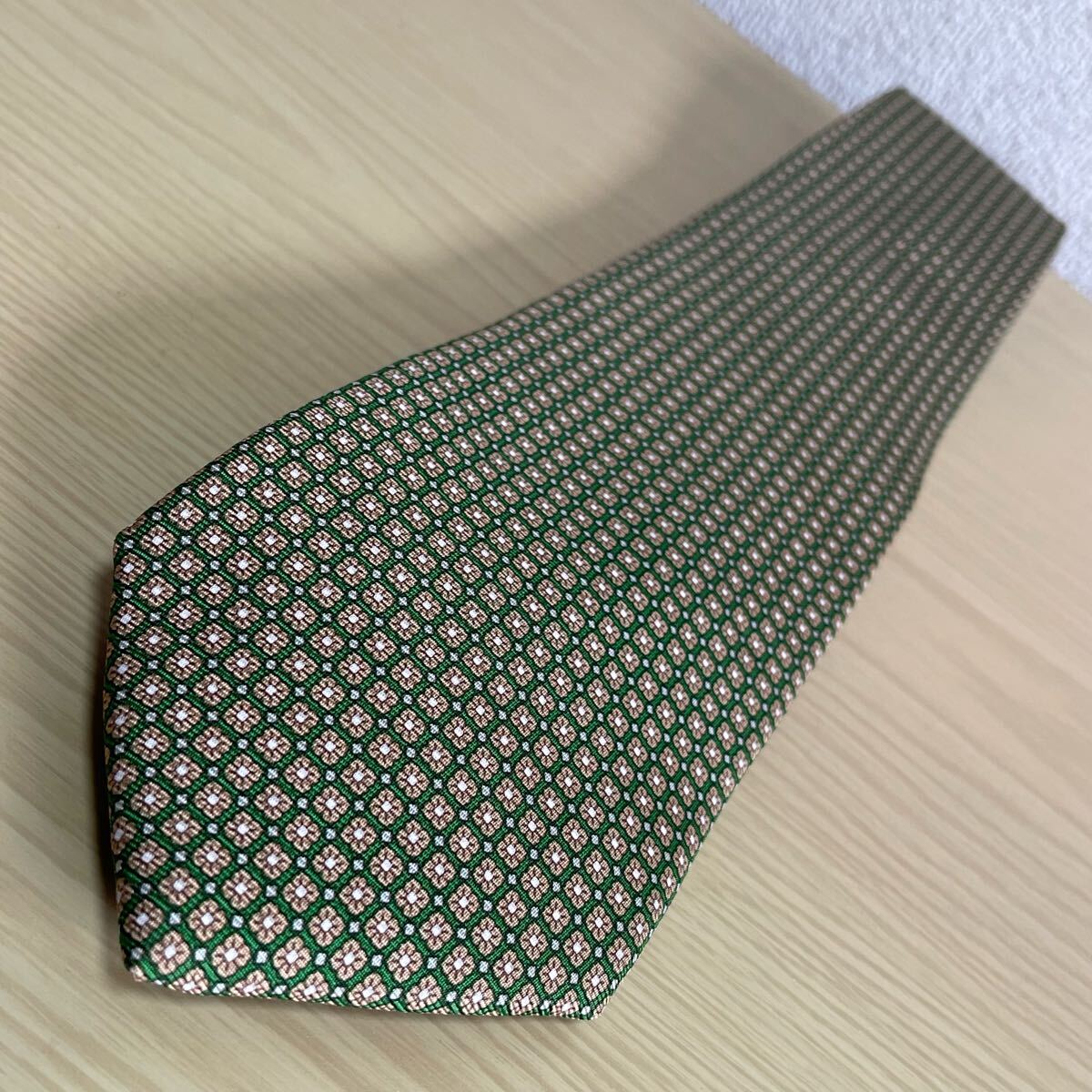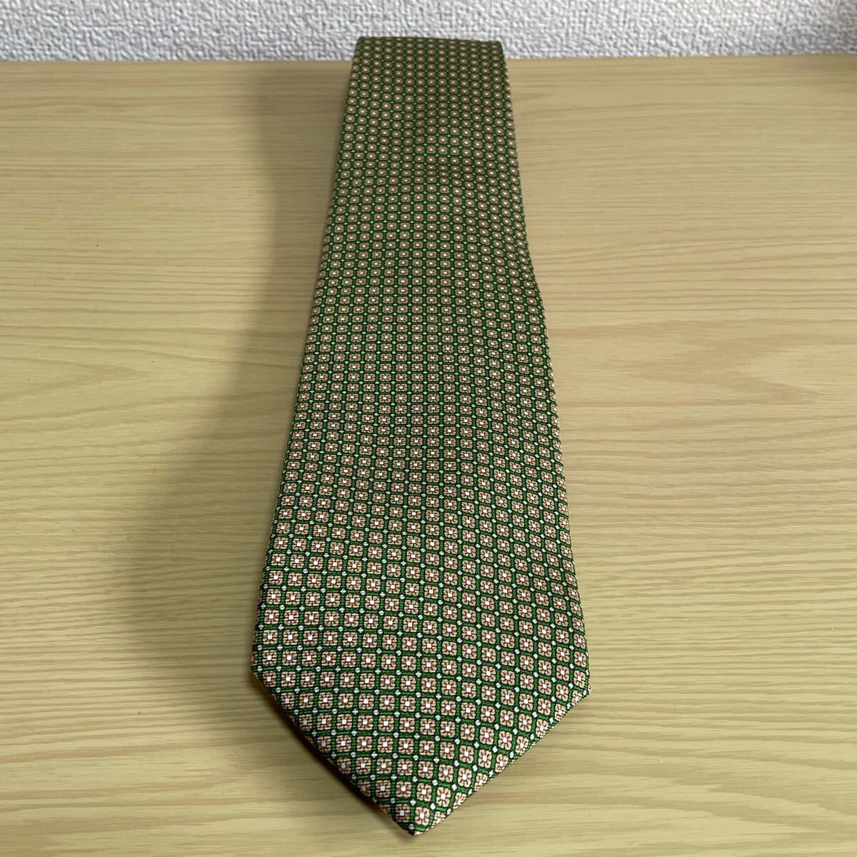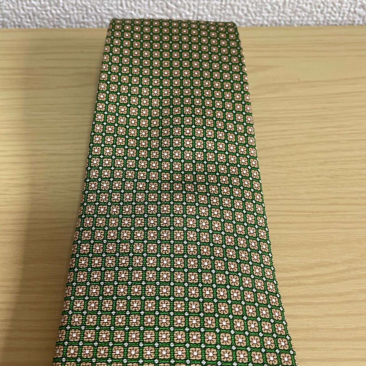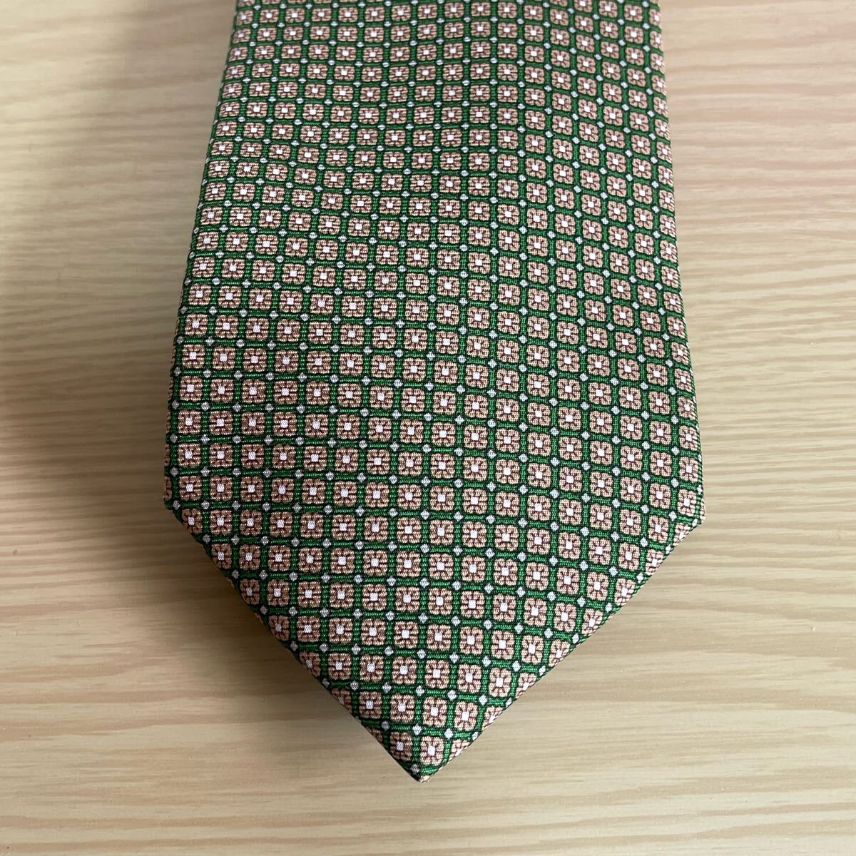 薄緑茶ミクロスクエア柄デザインネクタイ