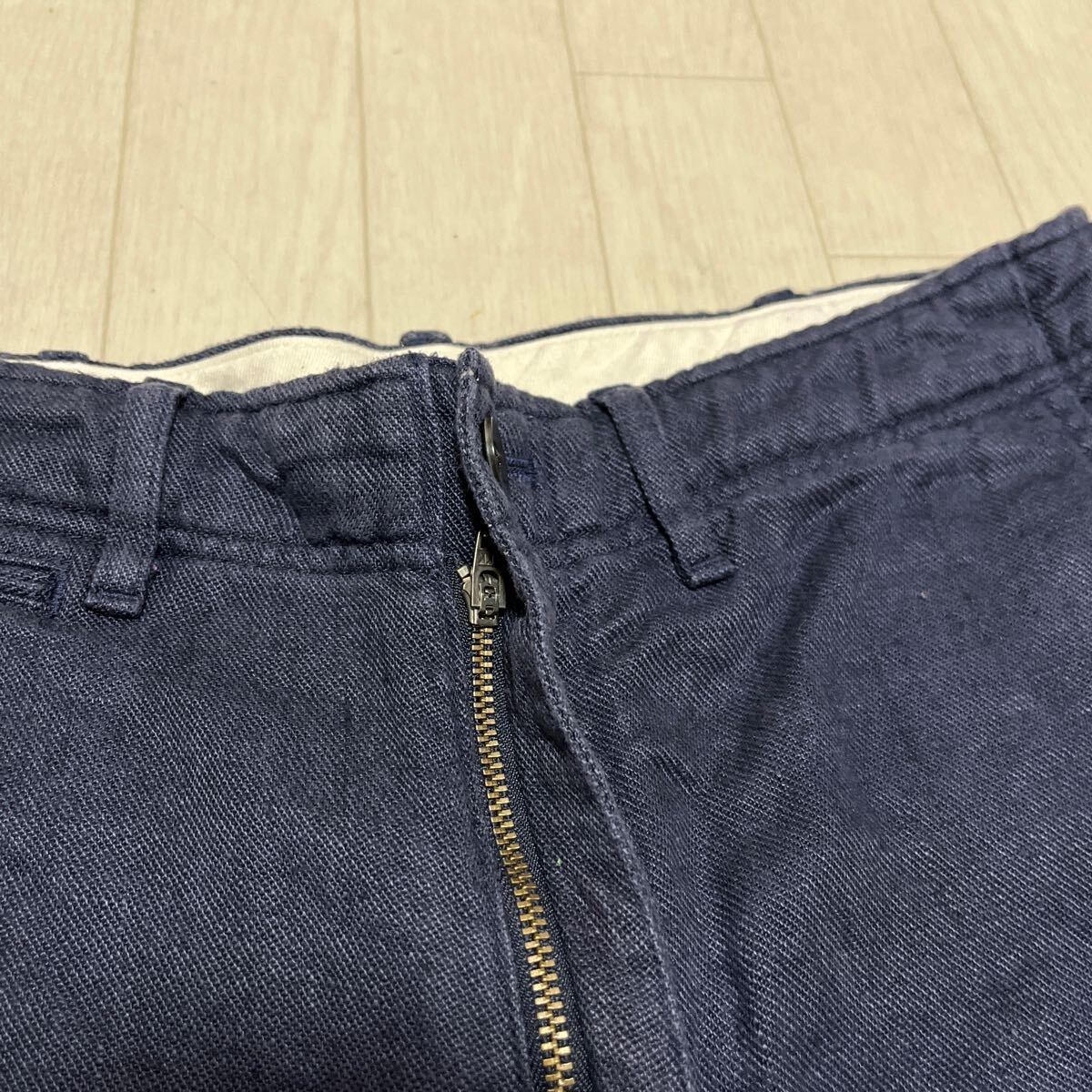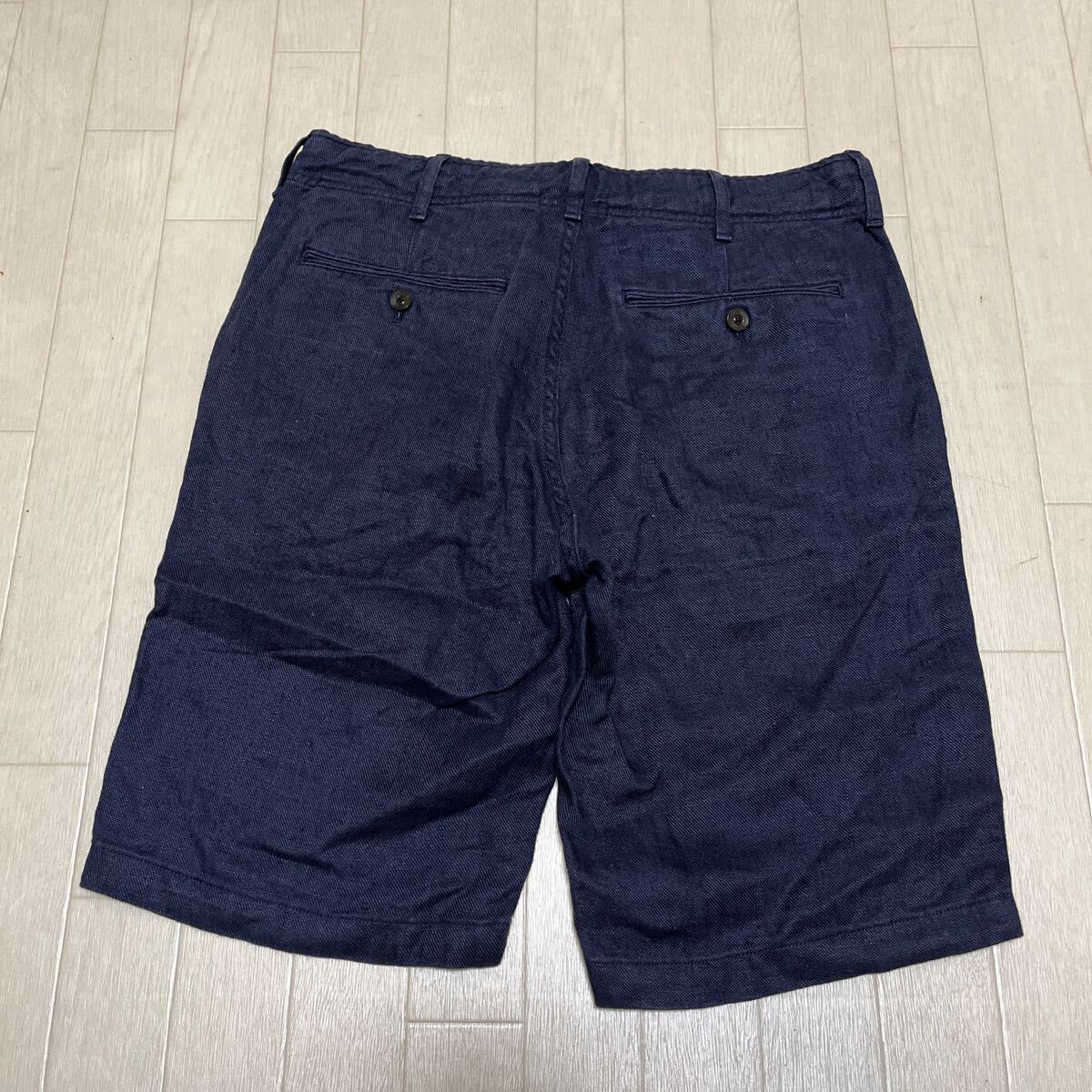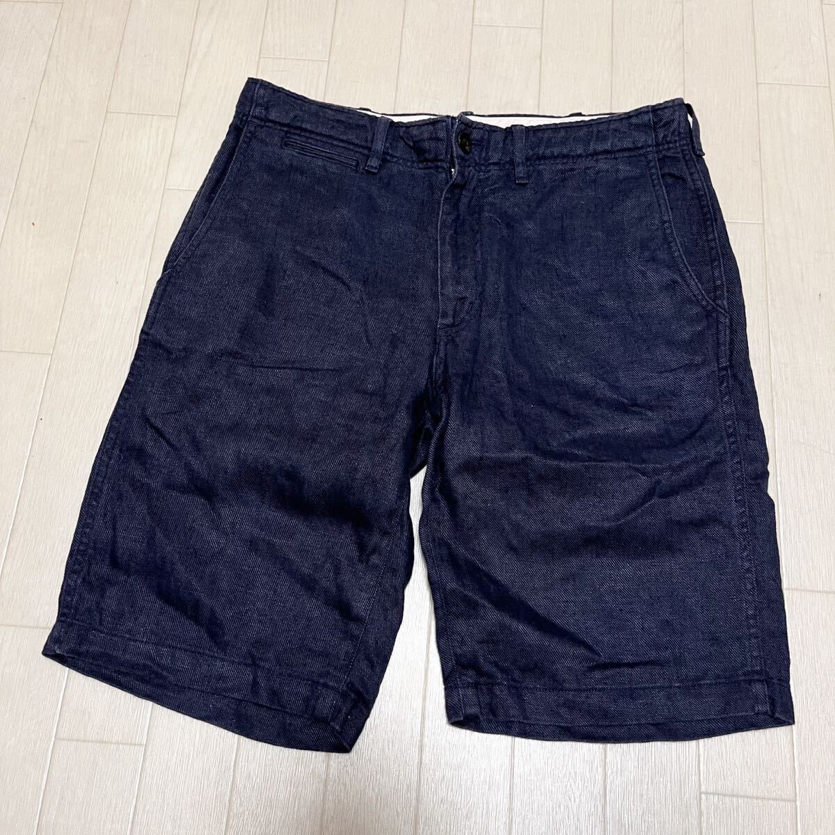 和745★ GREEN LABEL RELAXING グリーンレーベルリラクシング ハーフパンツ ジップフライ ボトムス L ネイビー メンズ リネンパンツ
