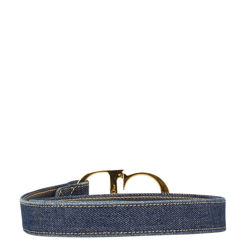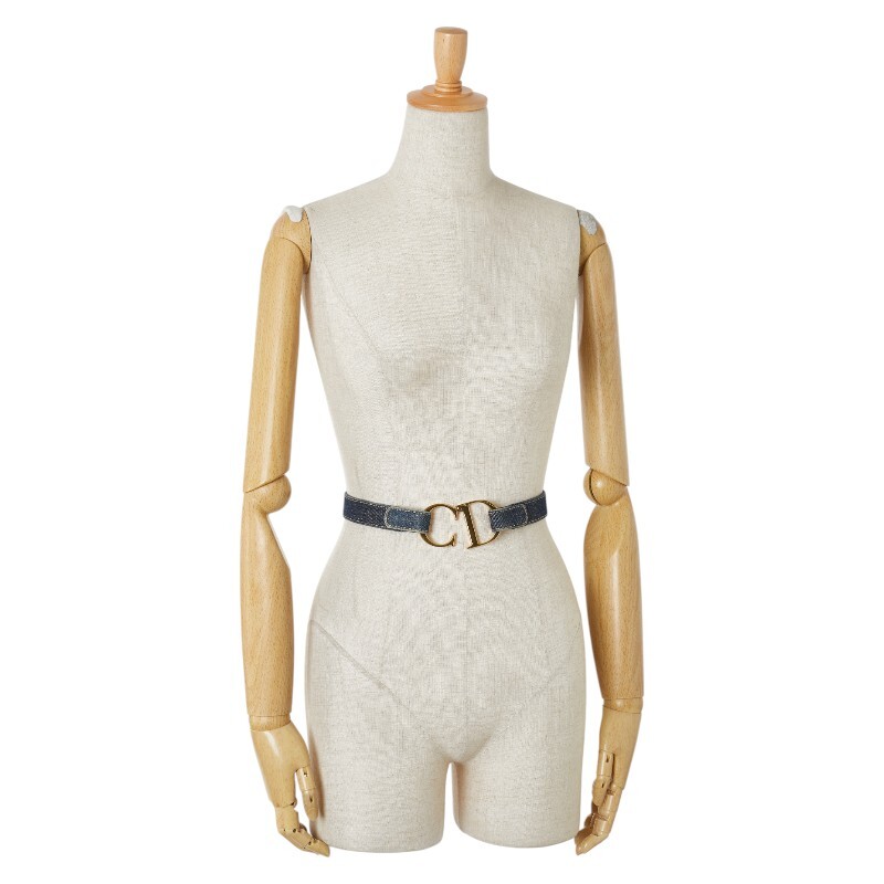 ディオール CDバックル ベルト サイズ:M インディゴブルー ゴールド デニム メッキ レディース Dior 【中古】