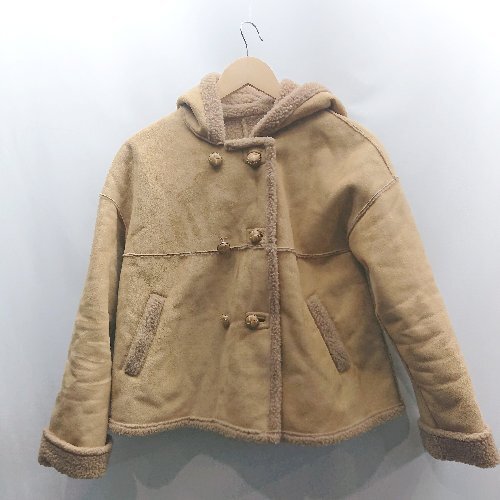 ■ ⊇ relacher 裏地ボア ダブルボタン 長袖 ショートダッフルコート サイズF ライトブラウン系 レディース E