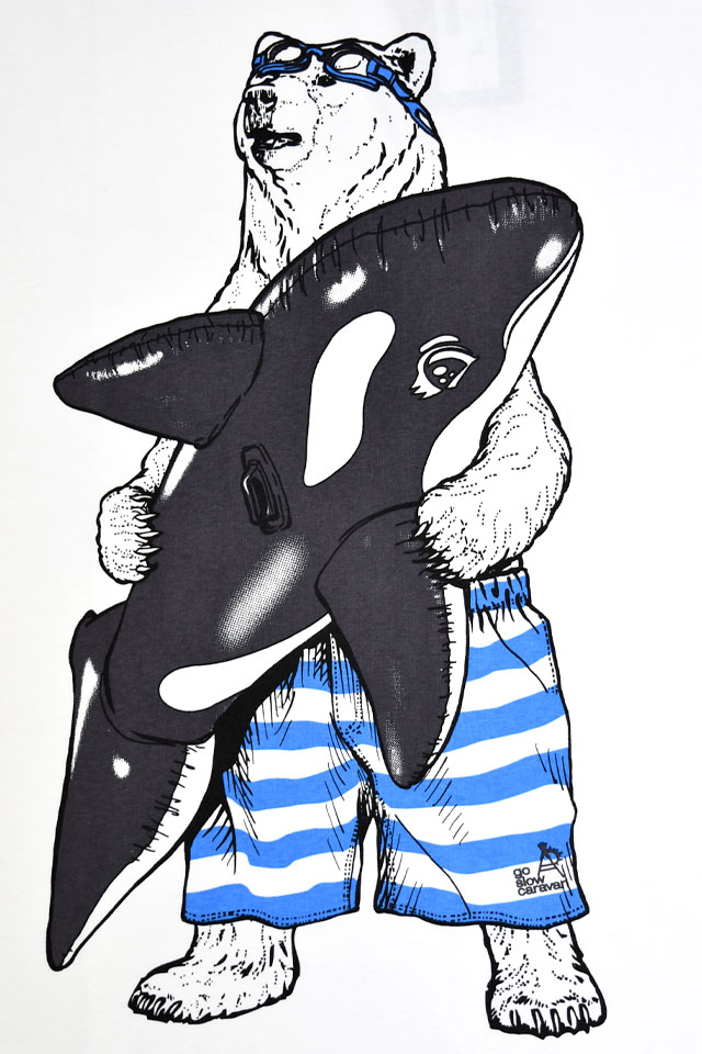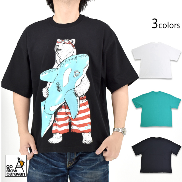 旅行やフェス、キャンプ、サーフィン、サイクリングなど、外遊び好きの仲間が集まってはじめたブランド【go slow caravan】より「プールクマ BIG Tee(341920)」のご紹介です。 BIGシルエットのクマTシャツが登場しました! プールと海へ行く準備はばっちりです。 生地には定番のUSAコットンを使用。 | ||||||||||||||||||||