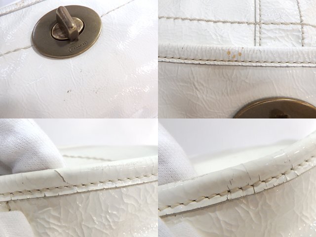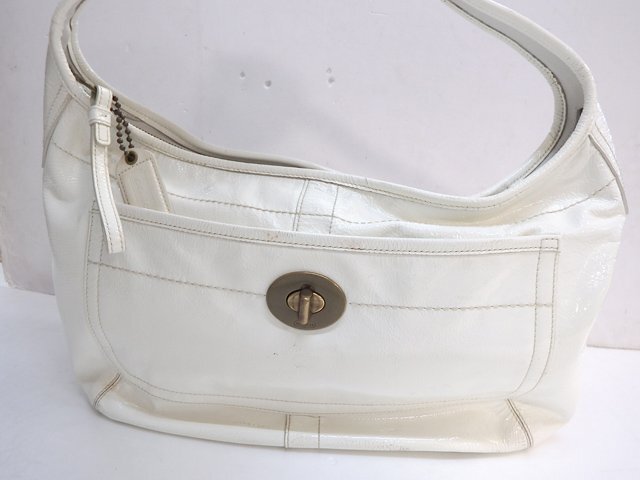 ブランド:COACH (コーチ) 品 目 :セミショルダーバッグ 品 名 :エルゴ セミショルダー バッグ 品 番 :C0793-11009 素 材 :パテントレザー カラー :ホワイト 金具-ゴールド サイズ :約 W39×H25×D10cm 仕 様 :ファスナー開閉 付属品 :本体のみ こちらのお品は【used品】となります 色移り、黒ずみ等が生じているお品です。 表面にシワ、金具の擦れ・小キズ、塗装剥げ等が見受けられます。 内側は、少々の薄汚れが生じておりますが、大きなダメージは見受けられません。 別途:その他、いろいろ出品しています |