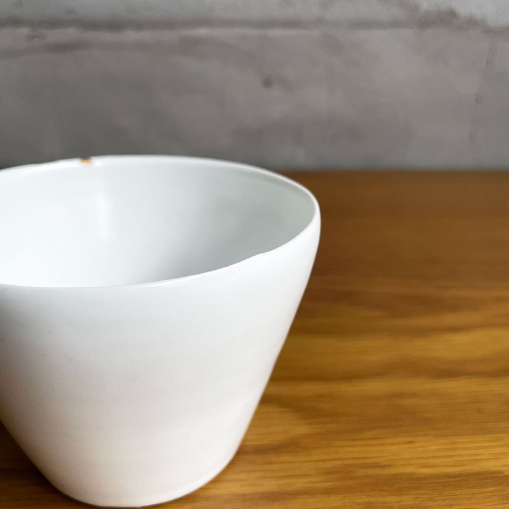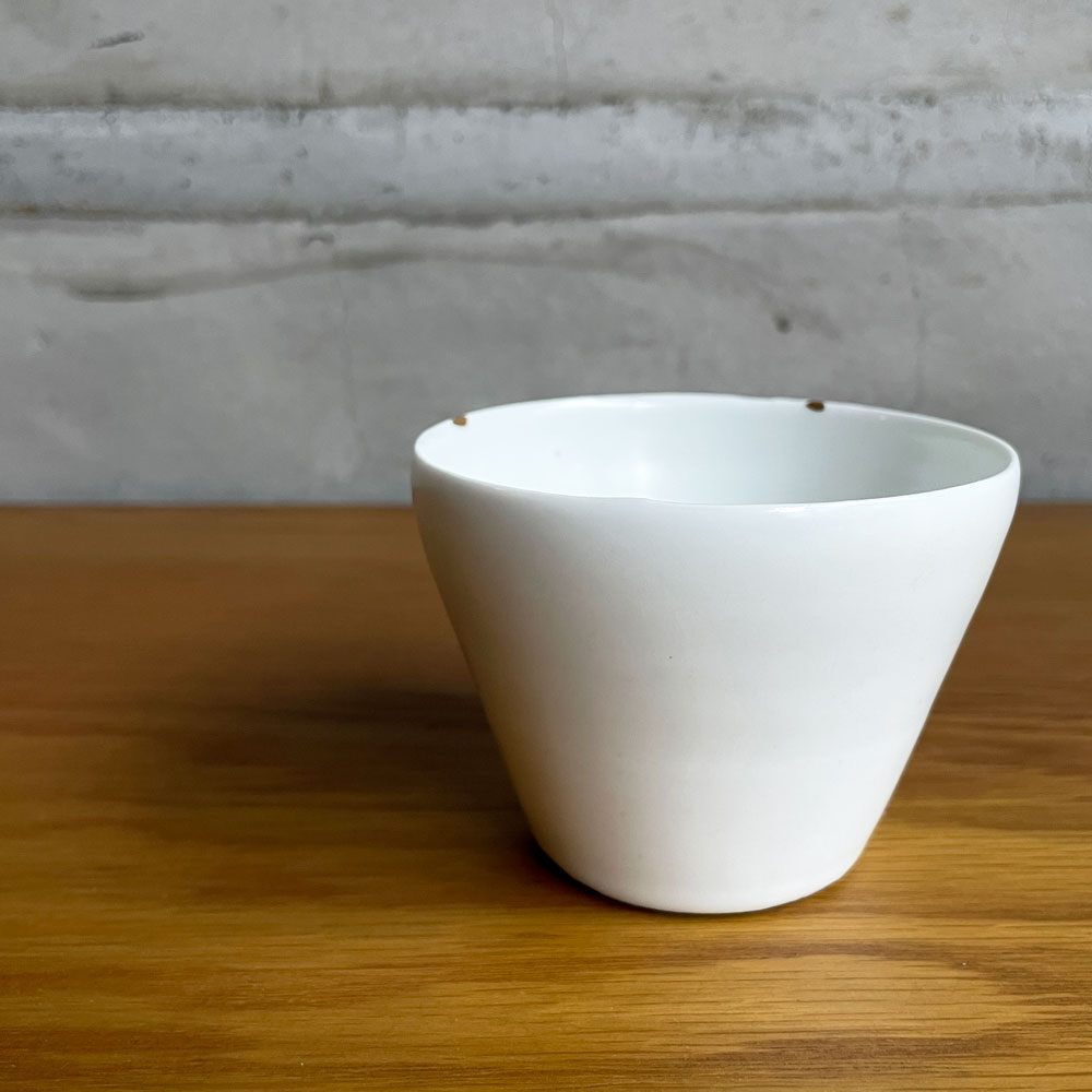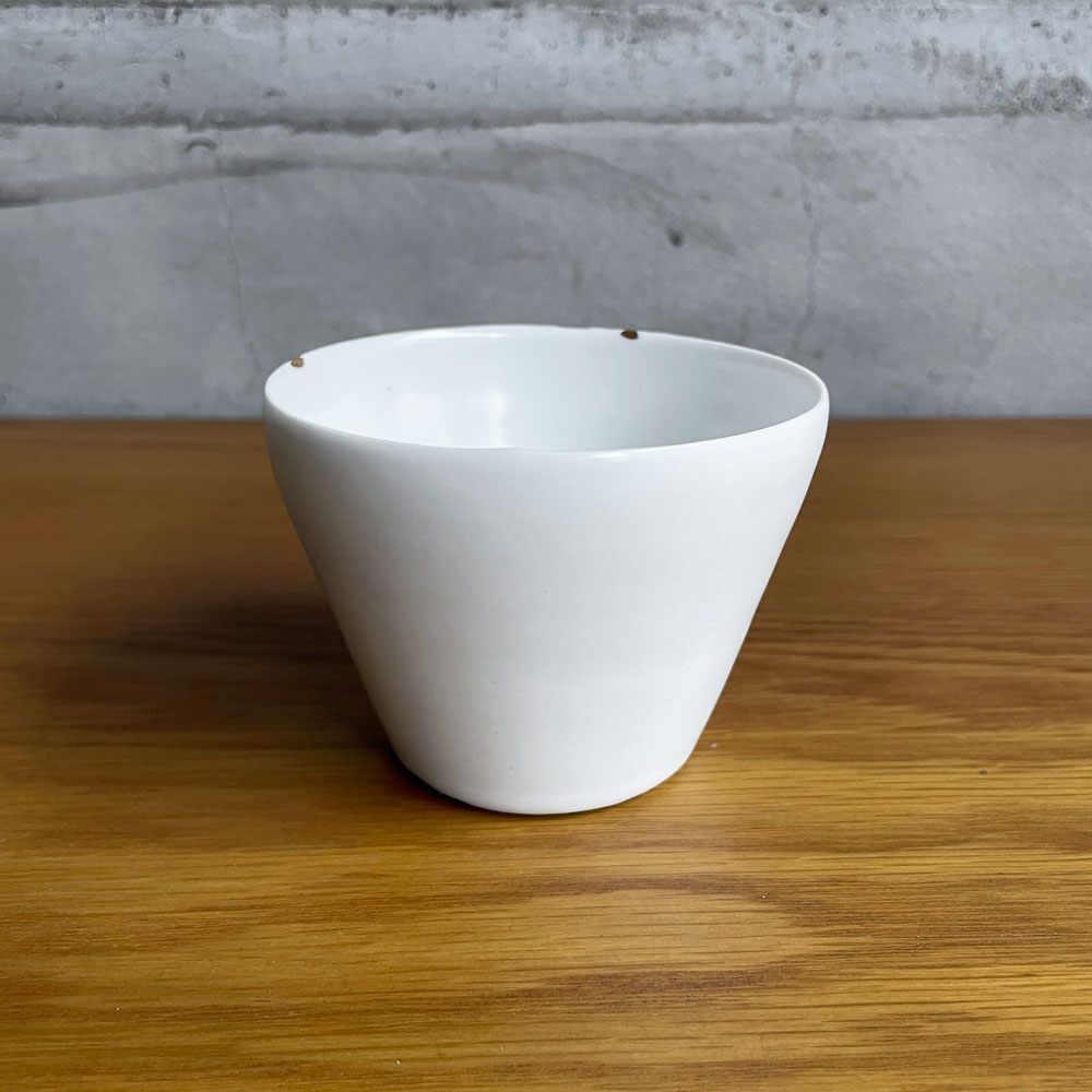 | コメント | 日本を代表する陶芸家の一人“黒田 泰蔵 Taizo Kuroda”(1946-2021)の「白磁 フリーカップ」のご紹介です。 黒田氏は人間国宝の島岡達三に師事し陶芸を学び、日本のみならず様々な国の美術館やギャラリーで個展を開催、代表的な白磁の作品は「究極の白磁の美」とも言われ世界中から高い評価を受けています。 こちらは一切の無駄を削ぎ落した白磁のフリーカップ。ずっと触って居たくなるような滑らかな手触りと上品な艶が特徴的です。 口元は引きっぱなしでゆらいでおり、薄くシャープな印象。 手作業で一つ一つ造られる為、形に若干の差があり個性を感じられる逸品です。 今回入荷したものは「金継ぎ」と呼ばれる、欠けたり割れたりした器を漆を使って修復し、最後の仕上げに金粉を使う伝統的な技法が施されたもの。 漆は天然素材で耐久性も高く、食べ物を入れる器に使用しても平気な為、安心してお使い頂くことが出来ます。 コレクション用にはもちろん、お酒や様々な飲み物と相性が良く、薄い飲み口は口当たりを柔らかくしてくれる等実用性も備えています。 ※こちらは、当社が作家の方から直接納入していただいているお品物ではございません。前所持者の方が購入されたUSED品となり、価格も現在の需要に基づく設定となっておりますこと、ご了承くださいませ。 ※当ショップは、主にリサイクル品を取り扱っております。基本的にUSED品である事をご理解頂き、ご入札をご検討下さいませ。 |
