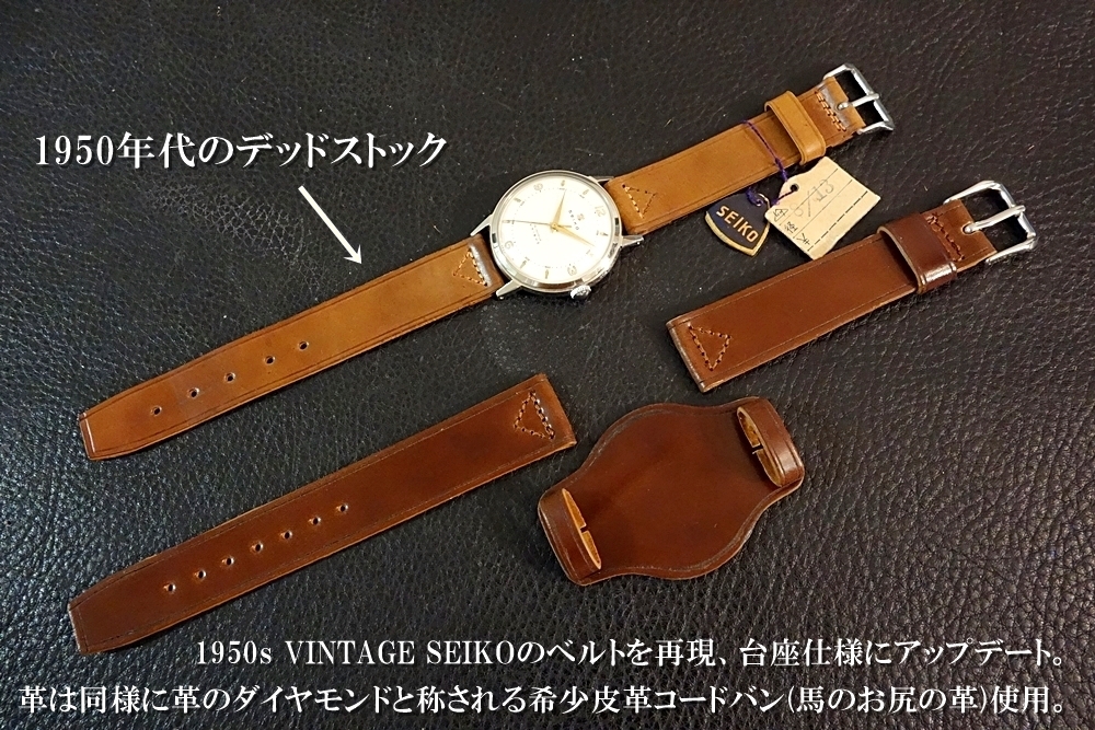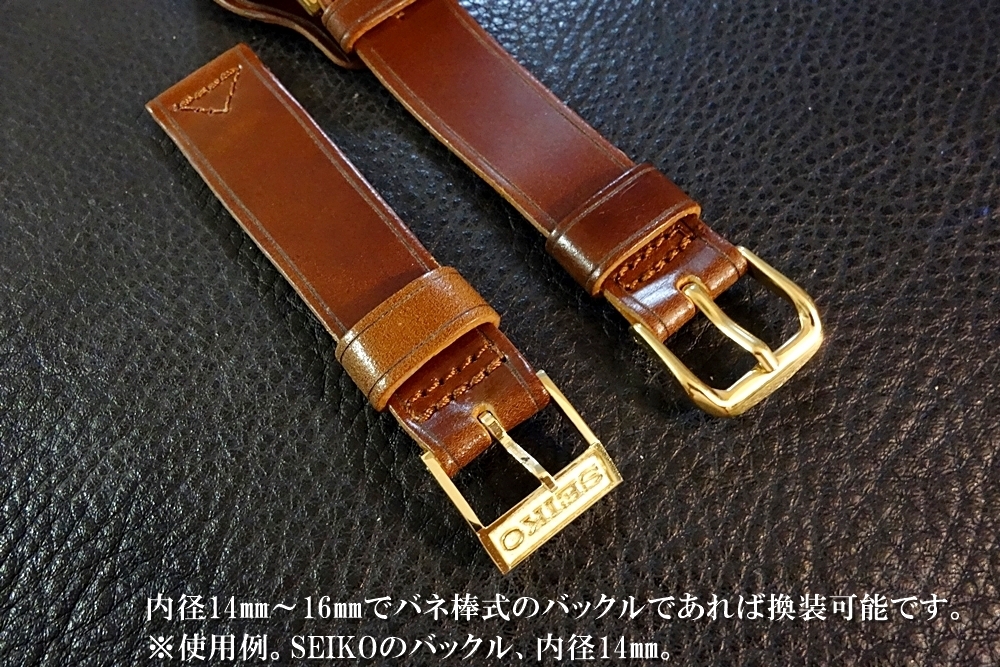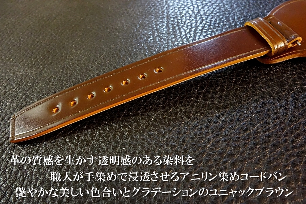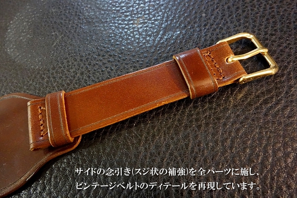 ◆台座付VINTAGE BELT◆高品質国産アニリン染めオイルコードバン Custom Order(台座SIZE/BUCKLE COLOR) 19mm コニャックブラウン 日本製 受注生産(納期10日前後) |