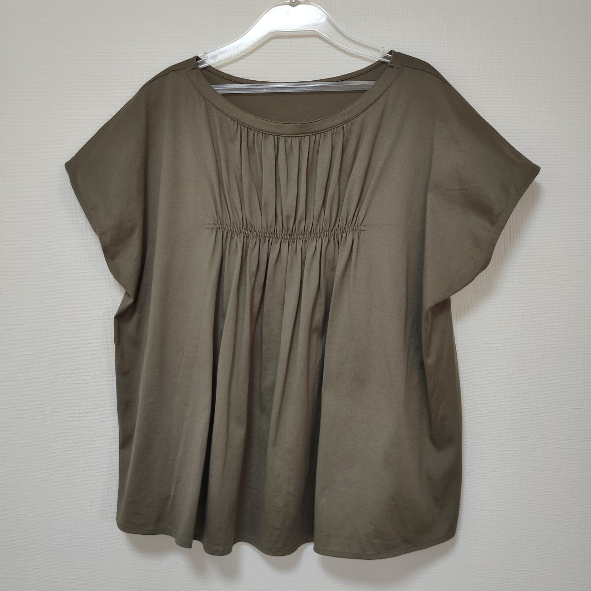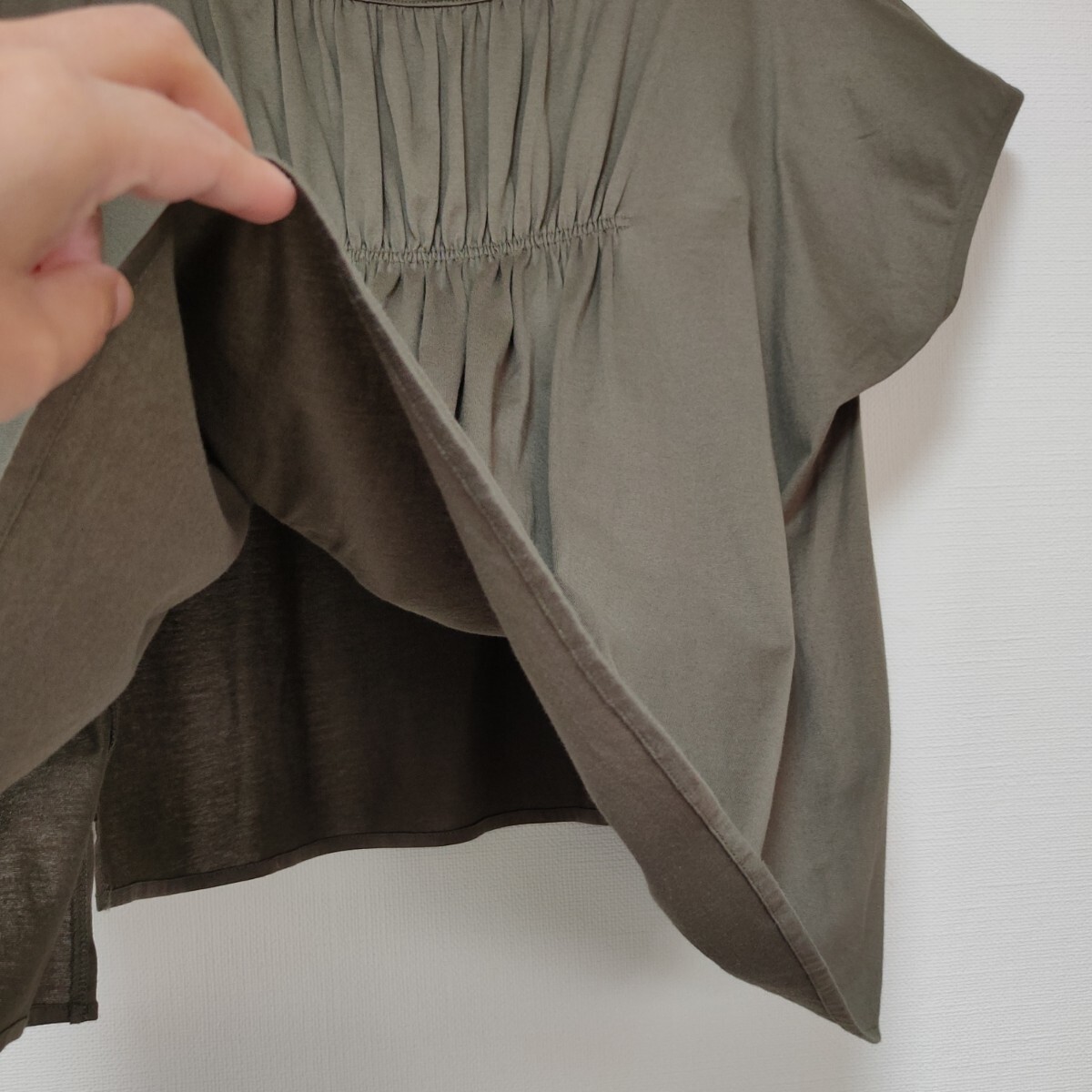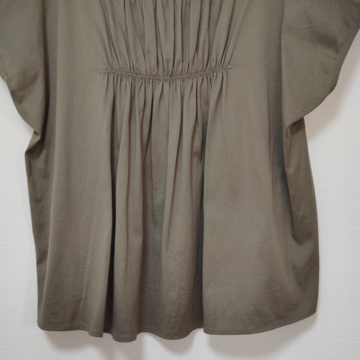 美品 ステュディオス STUDIOUS 日本製ギャザーブラウス カットソー カーキ