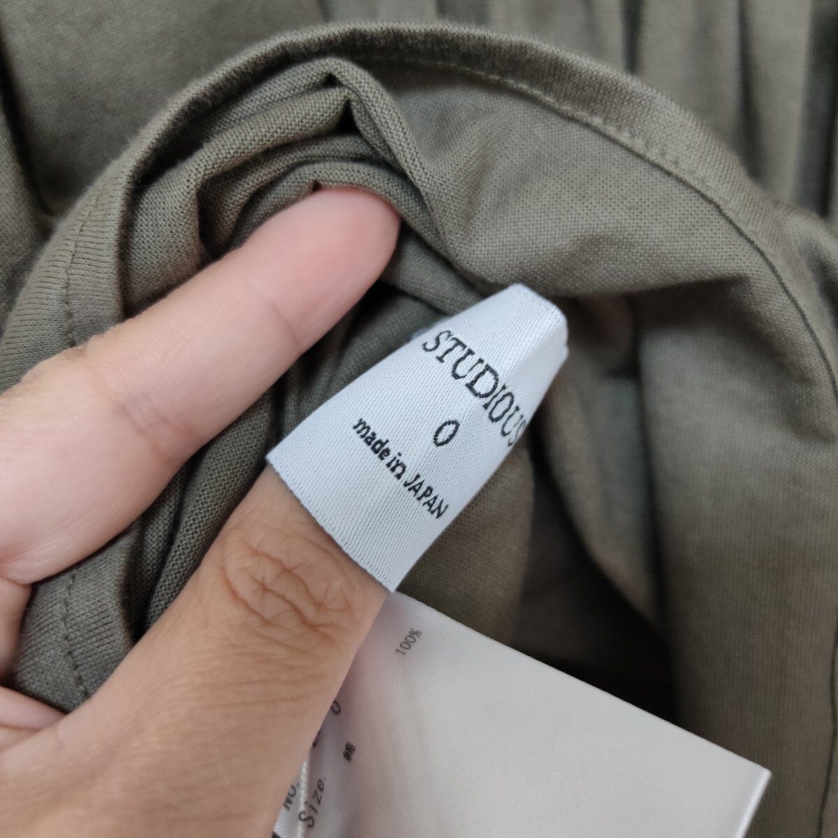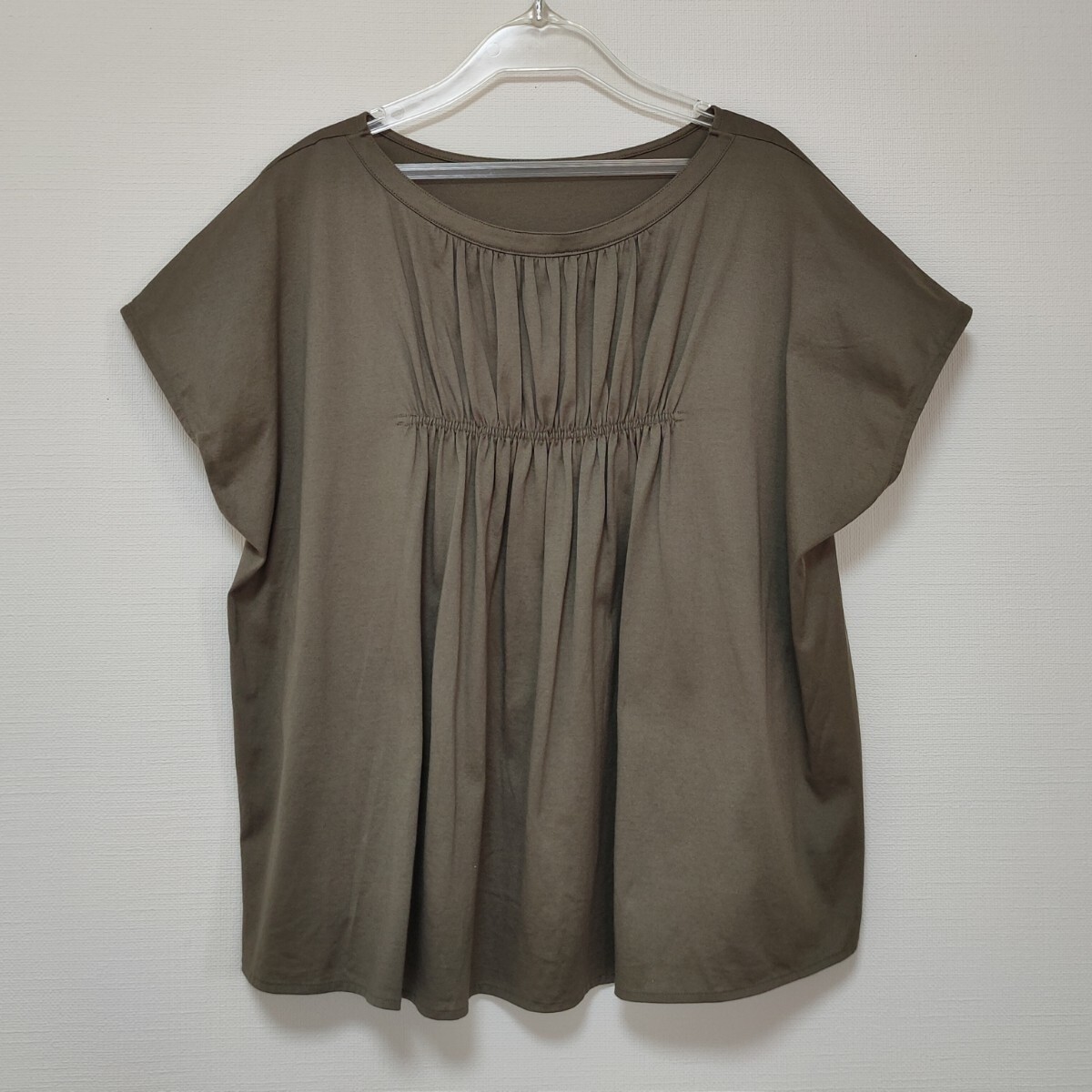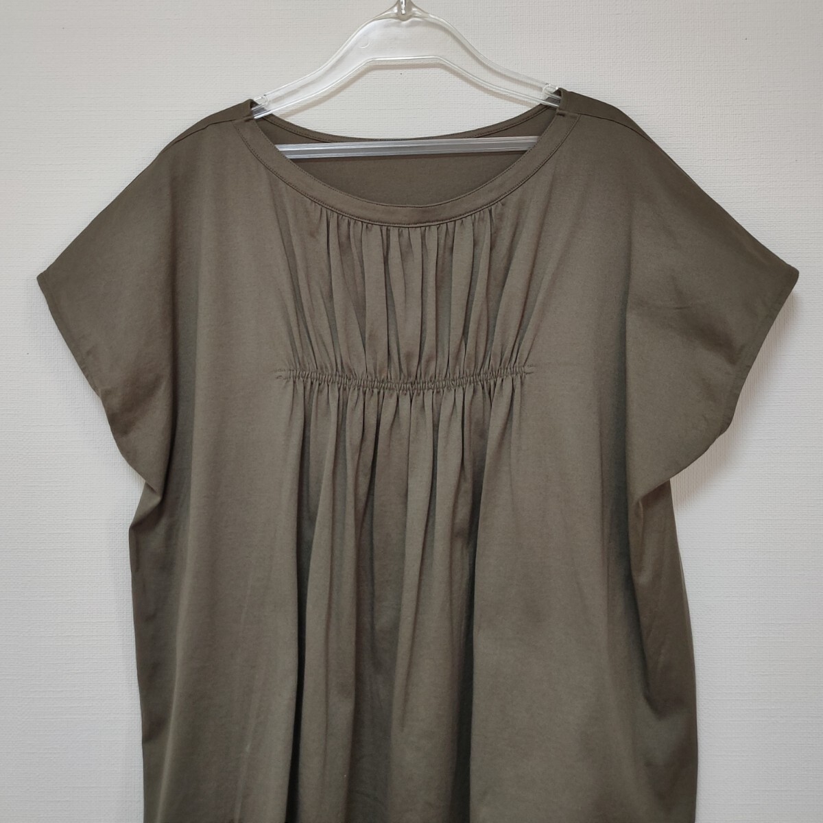 美品 ステュディオス STUDIOUS 日本製ギャザーブラウス カットソー カーキ