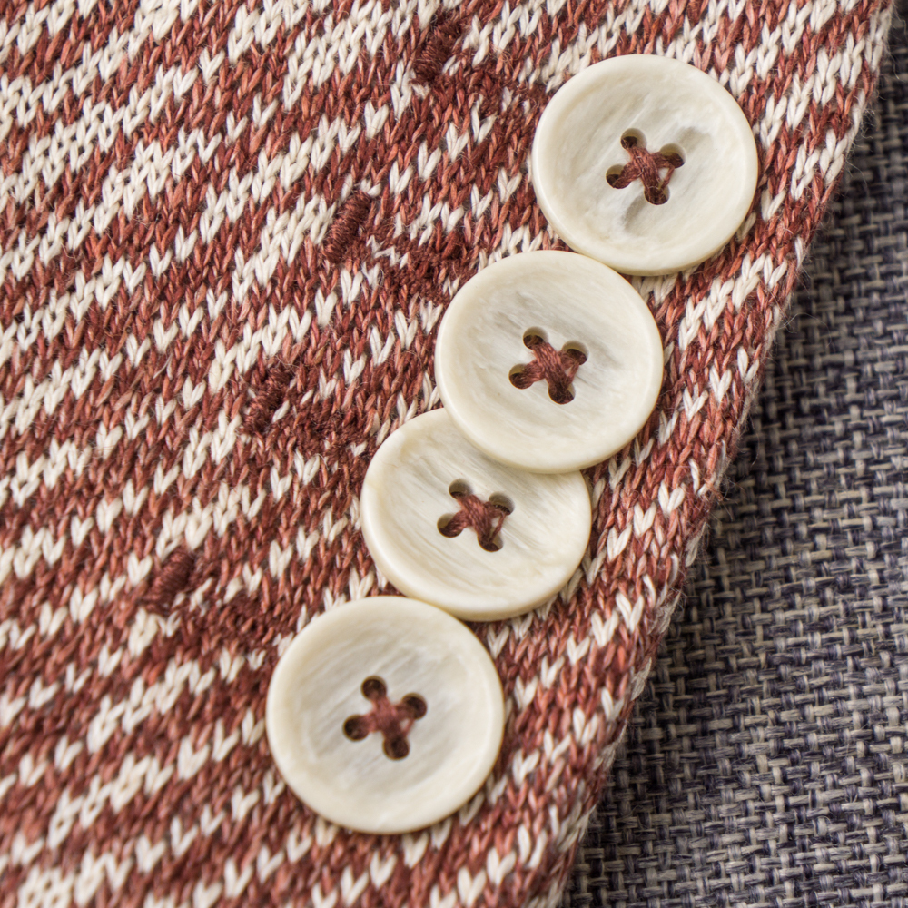 やや甘く織られたリネン特有のシャリ感を残した生地は、通気性が良く、ナチュラルな質感、清涼感はさることさがらニット織りの独特の奥行きが生まれ、天然繊維ならではの素材感を楽しんで頂けます。